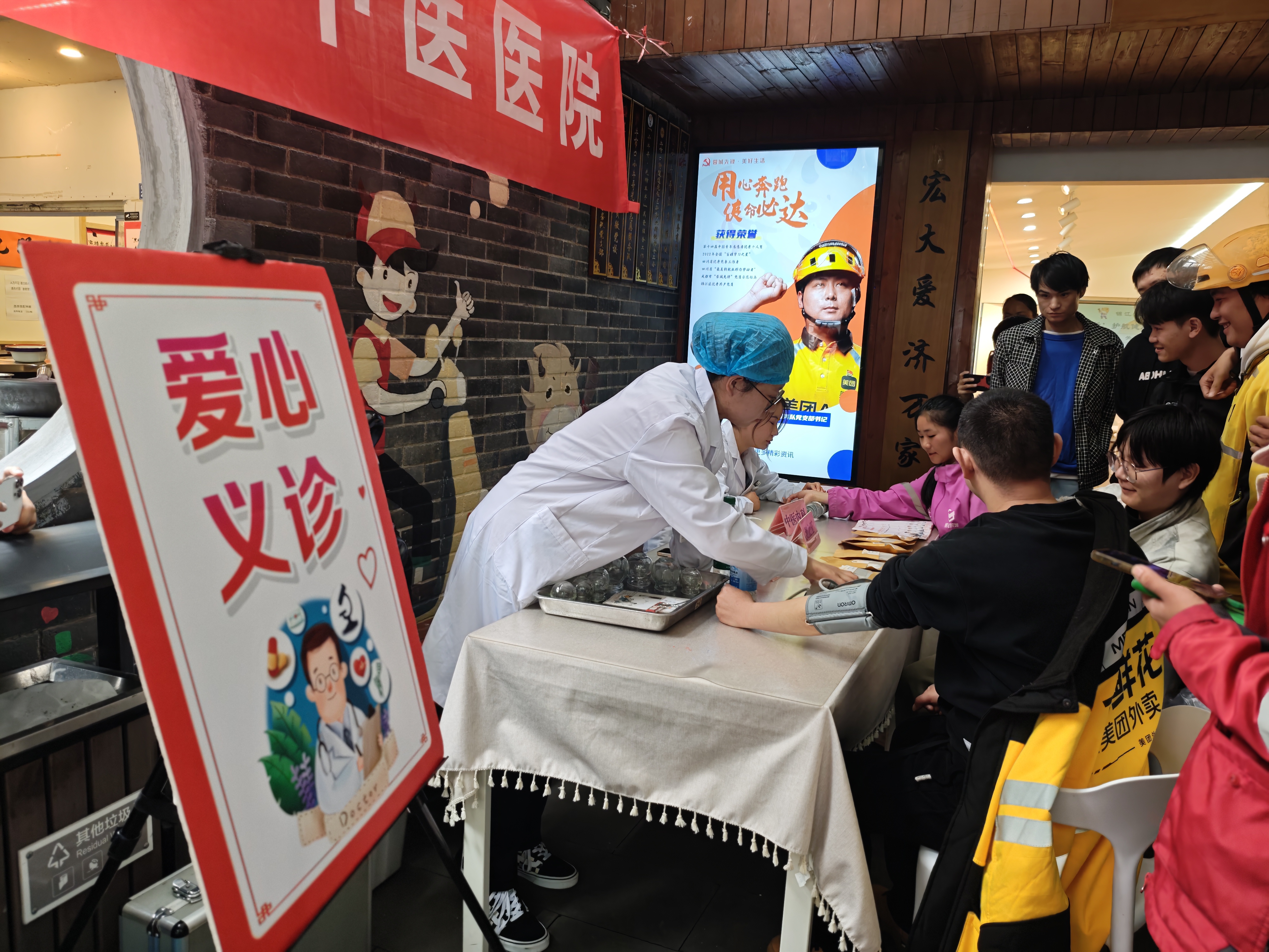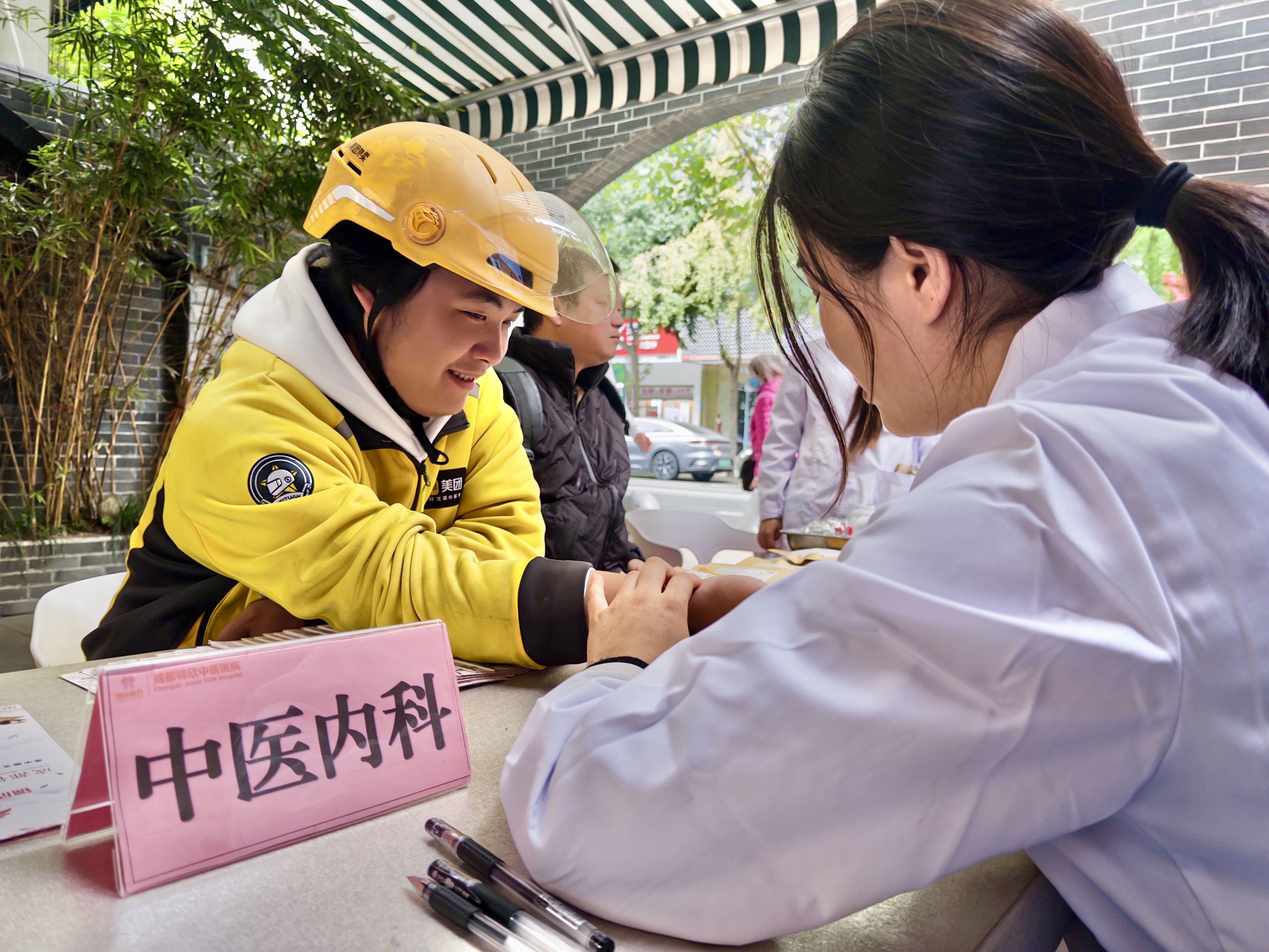 考虑到新就业人员工作节奏快、劳动强度大,活动设置多维健康服务区域,提供精准关怀,医护人员为骑手测血压、心率,评估健康状况,对指标异常者给予健康提醒与检查建议;中医医师通过“望闻问切”辨证施治,针对肩颈腰腿痛、肠胃不适等问题,提供中药处方、针灸、推拿等个性化调理服务。