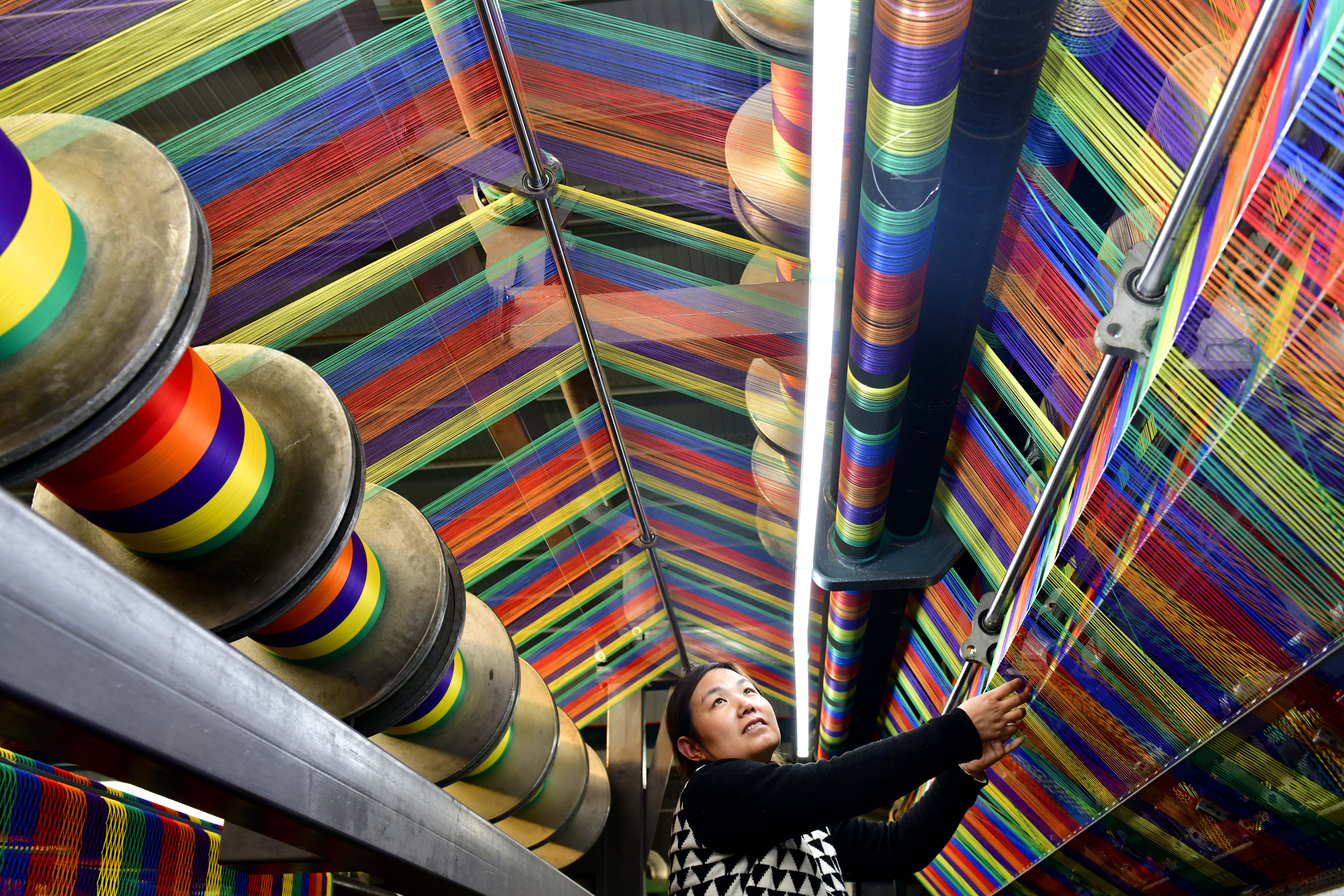 在山东省惠民县李庄镇一家绳网企业,工作人员在生产绳网产品(2023年11月22日摄)。新华社记者 郭绪雷 摄