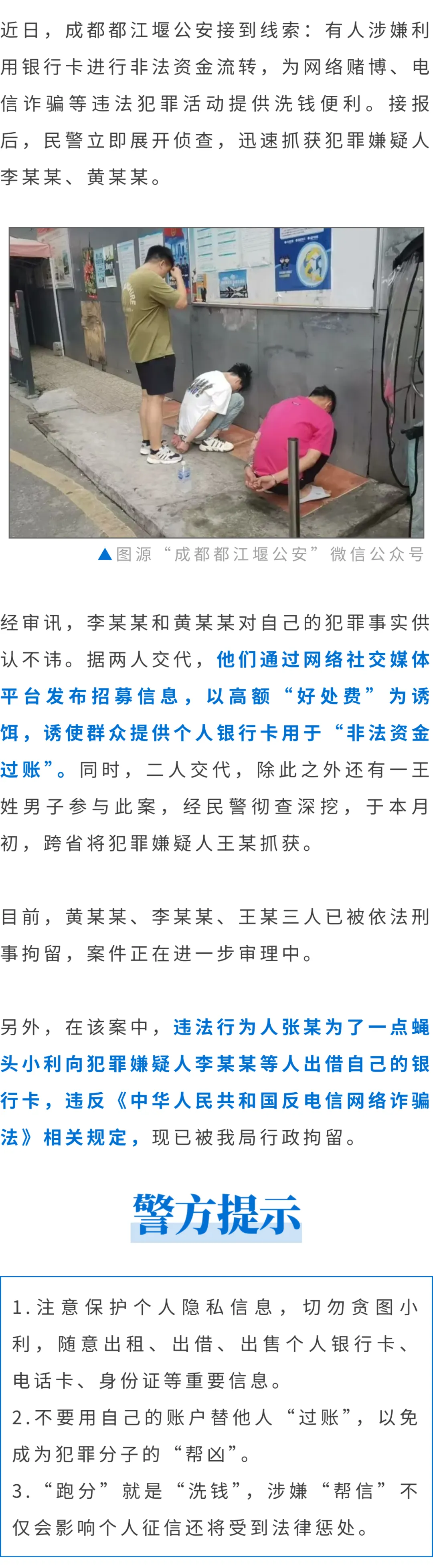 警惕“跑分”陷阱,成都警方查处一起“洗钱”案件 “成都都江堰公安”微信公众号 2024-08-16 09:28 79219 评论 13 天全罗代睿 2024-08-16 发表于四川 入民心 廖小卿 2024-08-16 发表于四川 洗钱违法,千万别碰! 平行者 2024-08-16 发表于四川 严厉打击洗钱💰 查看更多