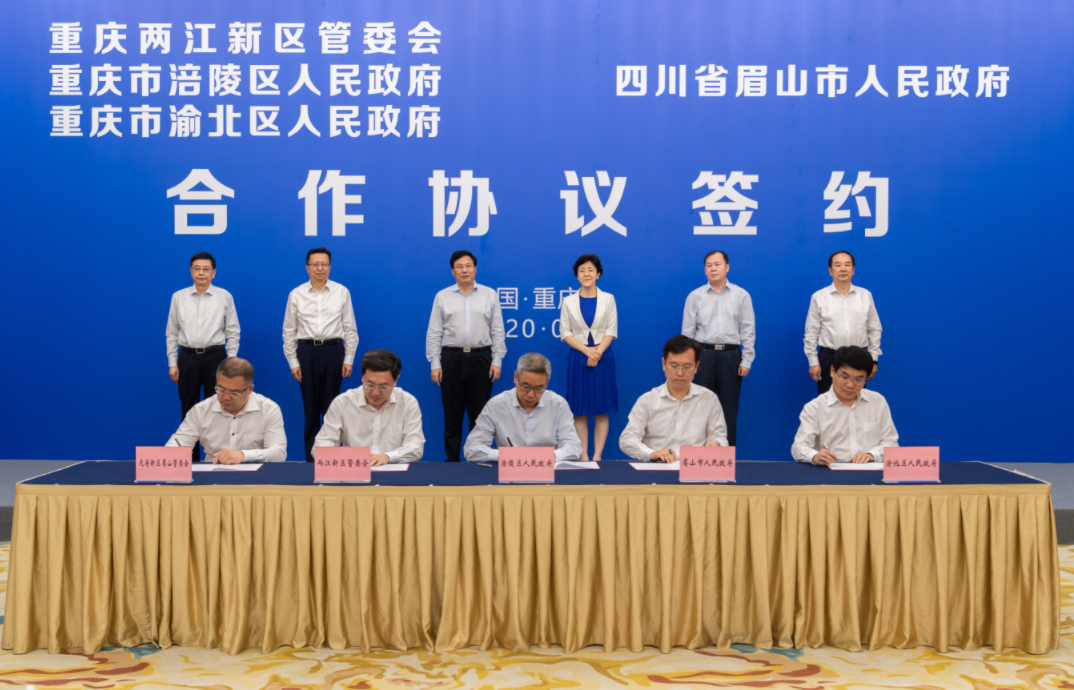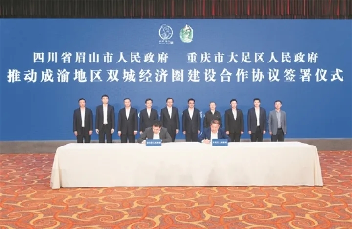 目前,眉山已与重庆两江新区、渝北区、涪陵区、大足区、重庆大学等县(区)和单位(部门)建立合作关系,推动签订20余个合作协议,并持续深入推进各项合作落地落实。
