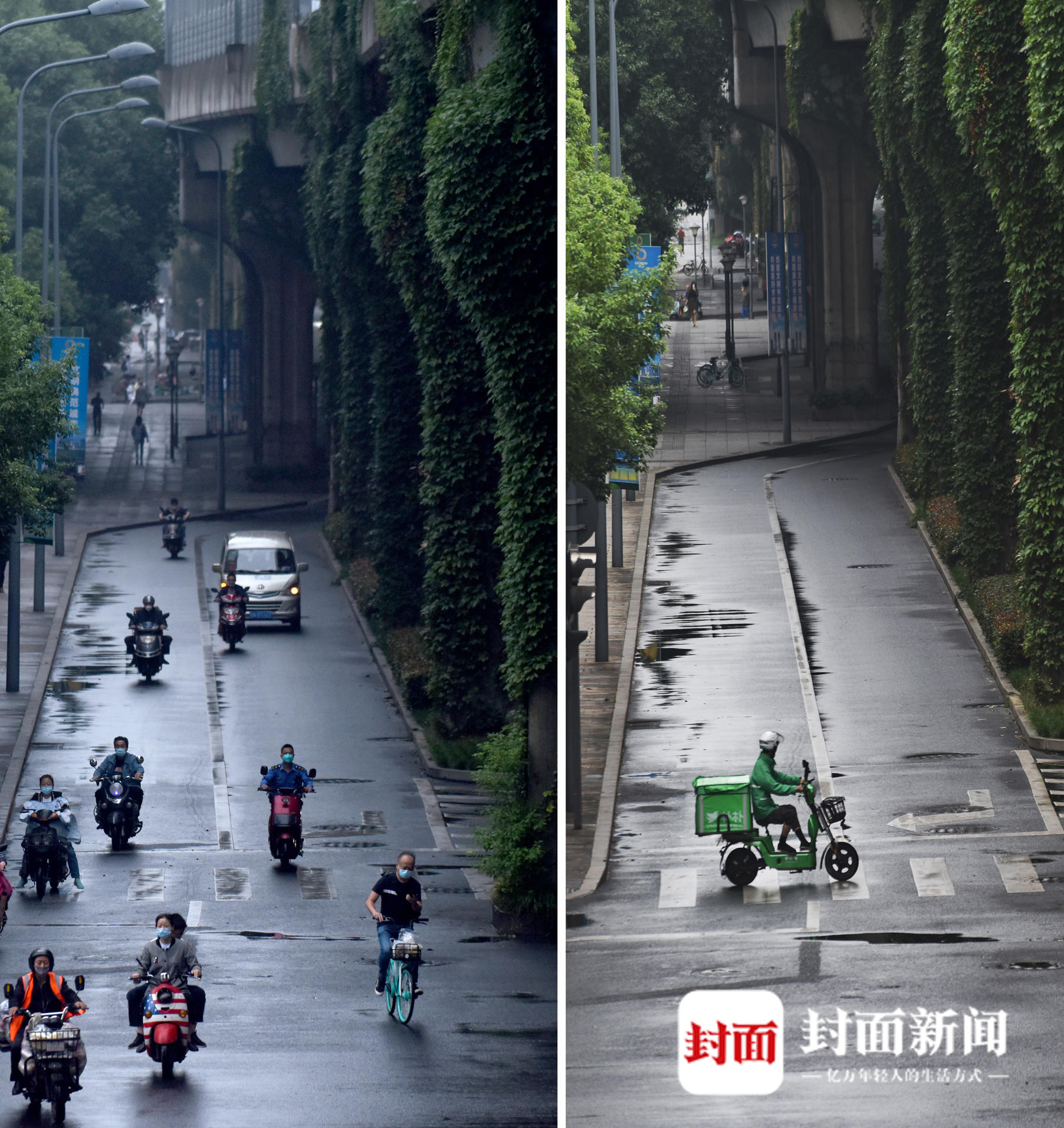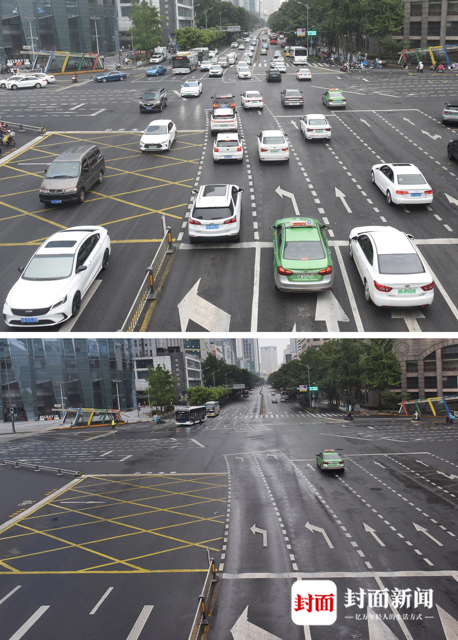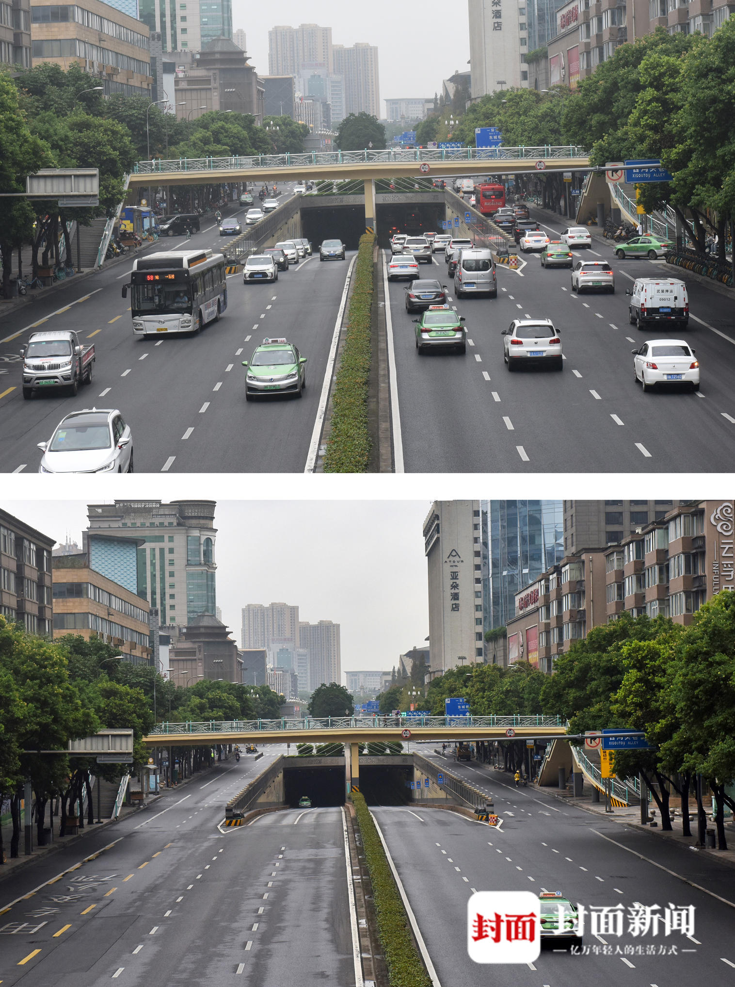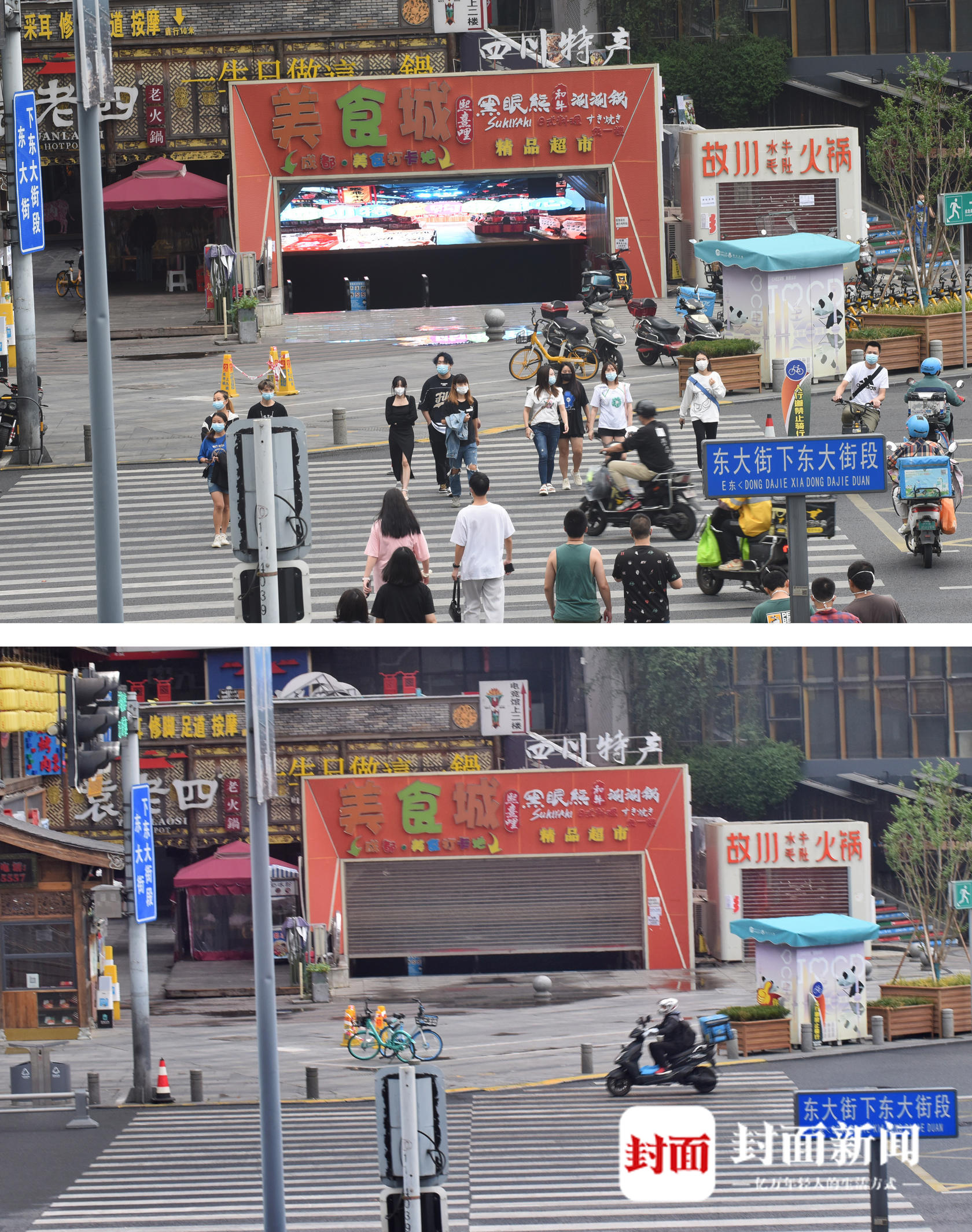9月19日,一组对比图片,再现成都由“慢下来,静下来”到全面有序恢复生产生活秩序的景象。那个车水马龙、极具烟火气的城市,正在归来。