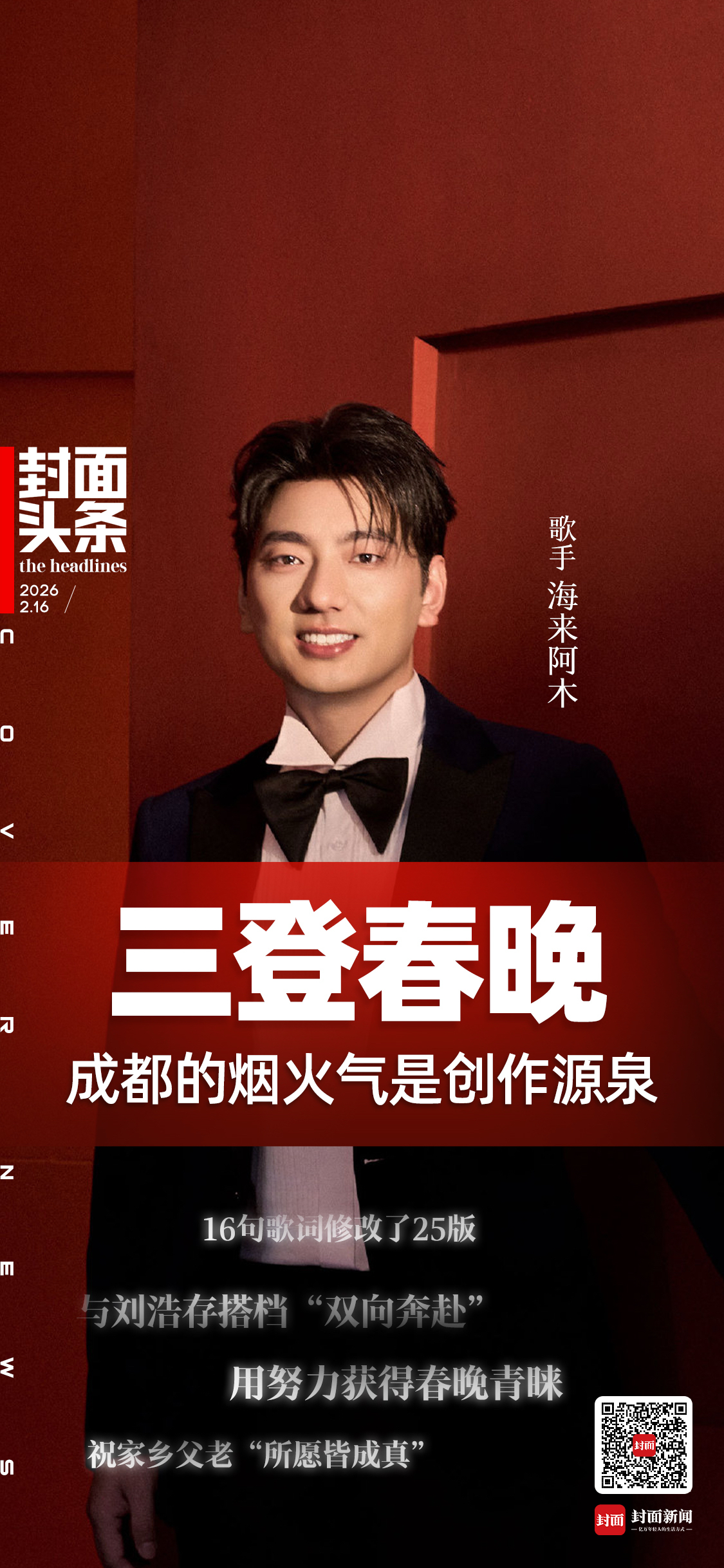 2月16日晚8点,总台《2026年春节联欢晚会》在全国人民的期待中准时开启。当晚,四川歌手海来阿木携手刘浩存带来歌曲《梦底》,歌词动情,表演生动,让很多人过目难忘。
