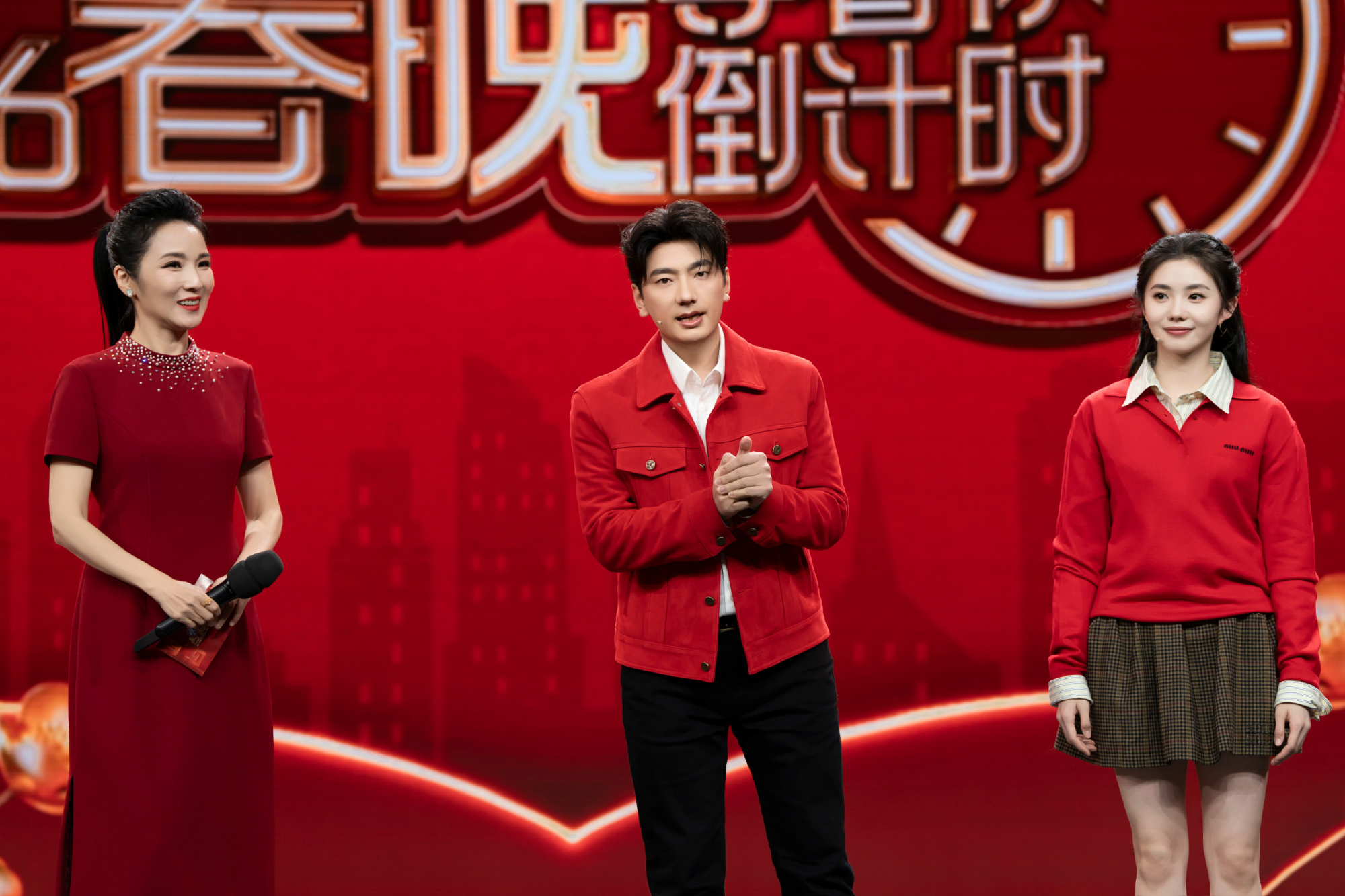海来阿木(中)与刘浩存(右)做客“春晚倒计时”。图据海来阿木微博