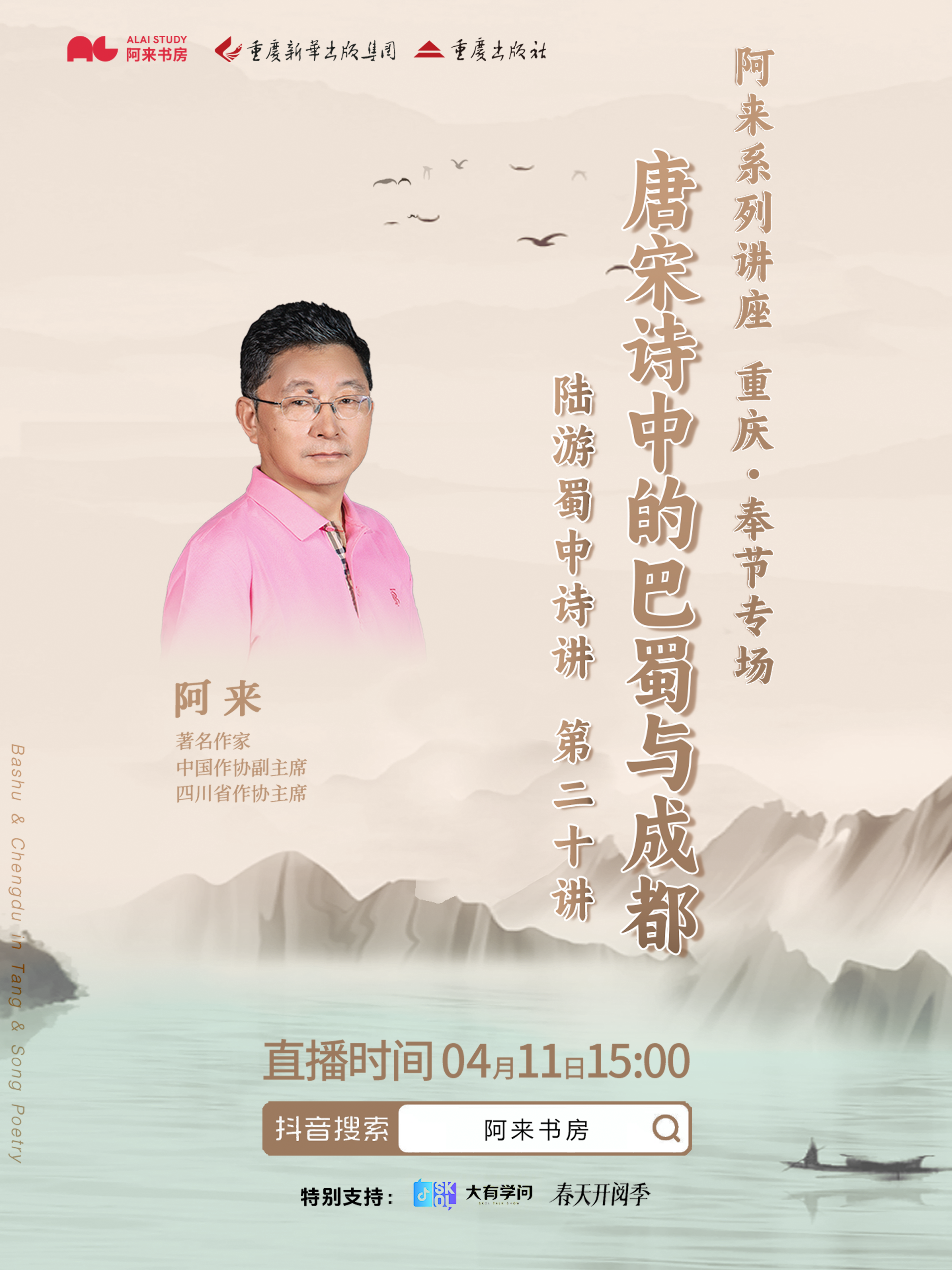 4月11日下午3点,阿来系列讲座“唐宋诗中的巴蜀与成都”之“陆游蜀中诗讲”第二十讲将在重庆奉节举行。本讲以“零落歌诗遍两川”为主题,阿来将细读陆游缅怀杜甫的诗篇,并以杜诗为参照,辨析唐宋诗的异同,品味唐宋风韵。