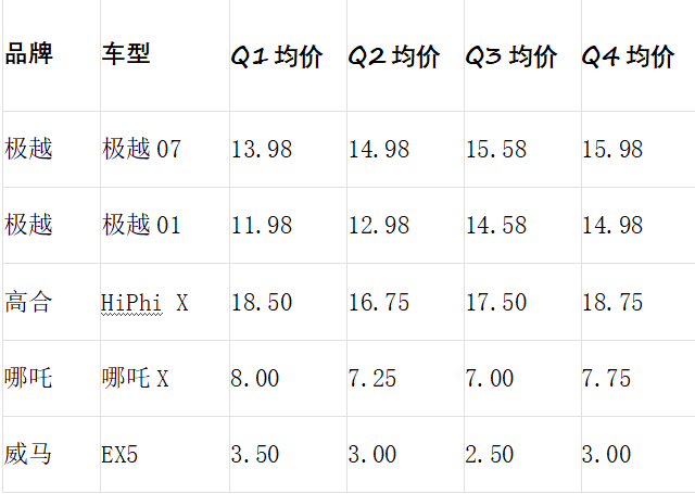 记者整合懂车帝、汽车之家及部分二手车商数据发现,2025年Q1至Q4的高合、威马、哪吒、极越等新造车市场交易数据显示,部分车型的保值率都出现了不同程度的回升;二手车均价也不同程度的上涨。