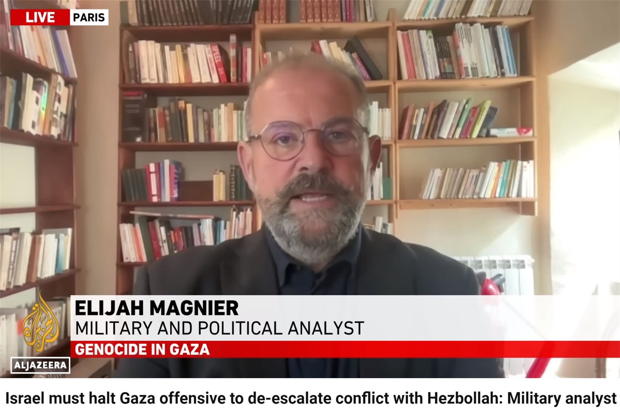 △格尔斯·巴斯金接受卡塔尔半岛电视台新闻节目视频采访