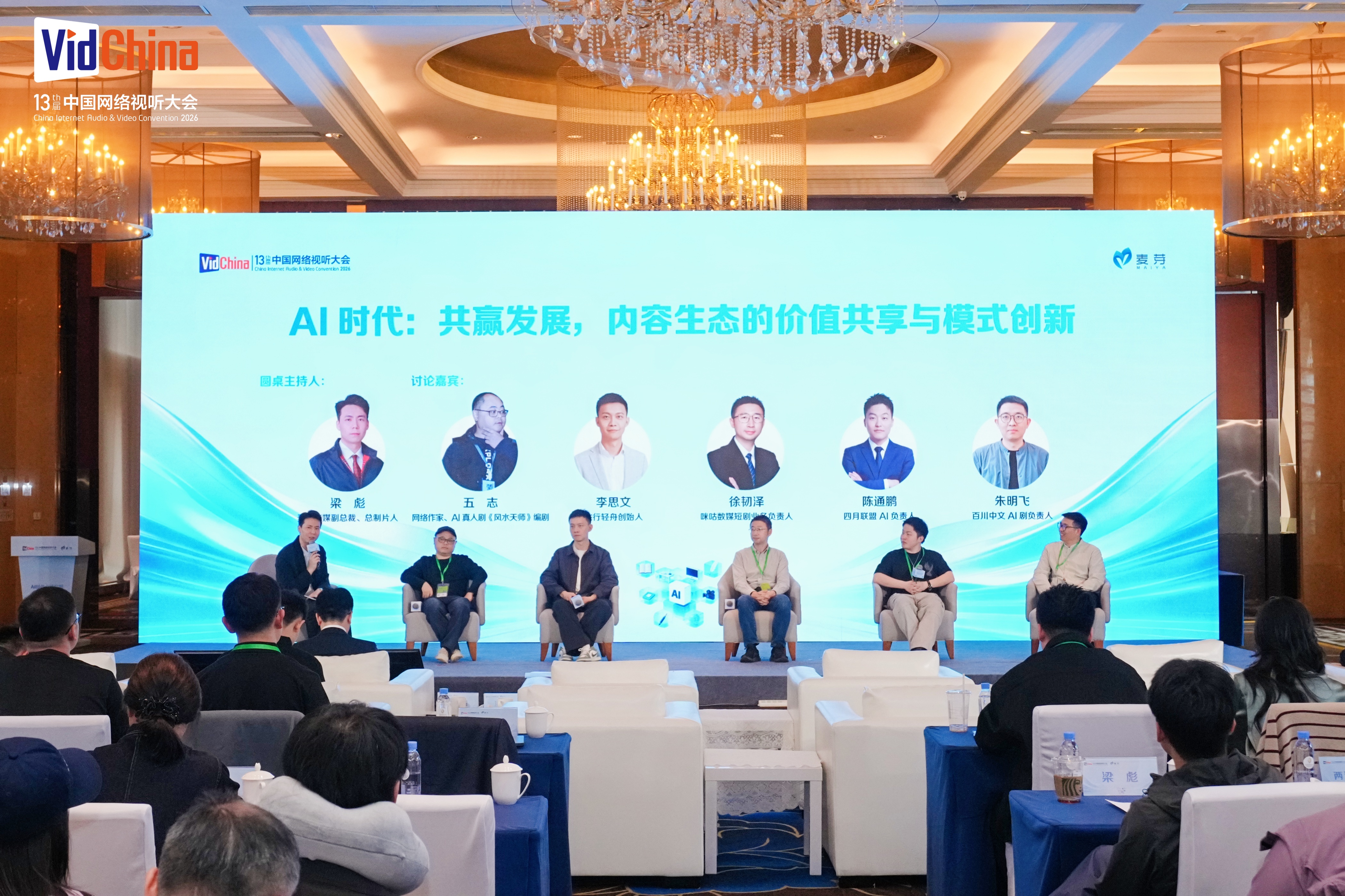 在圆桌论坛环节,网络作家、AI真人剧《风水天师》编剧五志,飞行轻舟创始人李思文,咪咕数媒短剧业务负责人徐韧泽,四月联盟AI负责人陈通鹏,百川中文AI剧负责人朱明飞围绕“AI时代:共赢发展,内容生态的价值共享与模式创新”这一议题,讨论了AI时代下对创作领域的挑战和助力,平台方在短剧生态里面的核心价值,以及AI时代未来的爆款打造等内容。