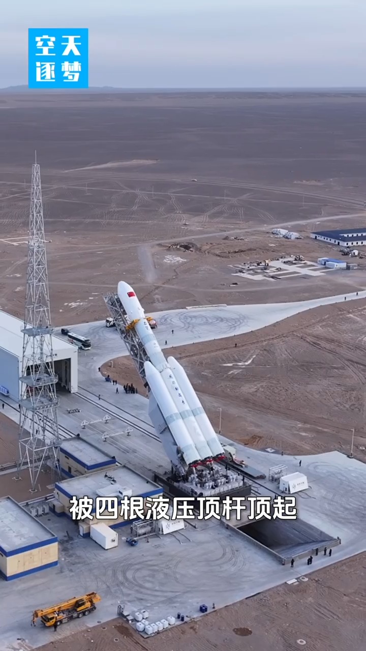 力箭二号的测发流程,也充满巧思。火箭在几公里外的厂房总装,经8.8公里公路转运至发射工位,可移动保温厂房会罩住火箭。一方面火箭在这里可以做射前最后的体检,另一方面也可以在射前保护火箭。直到发射前,移动保温厂房再次移开,火箭的起竖架被四根液压顶杆顶起,就可以进入发射流程。