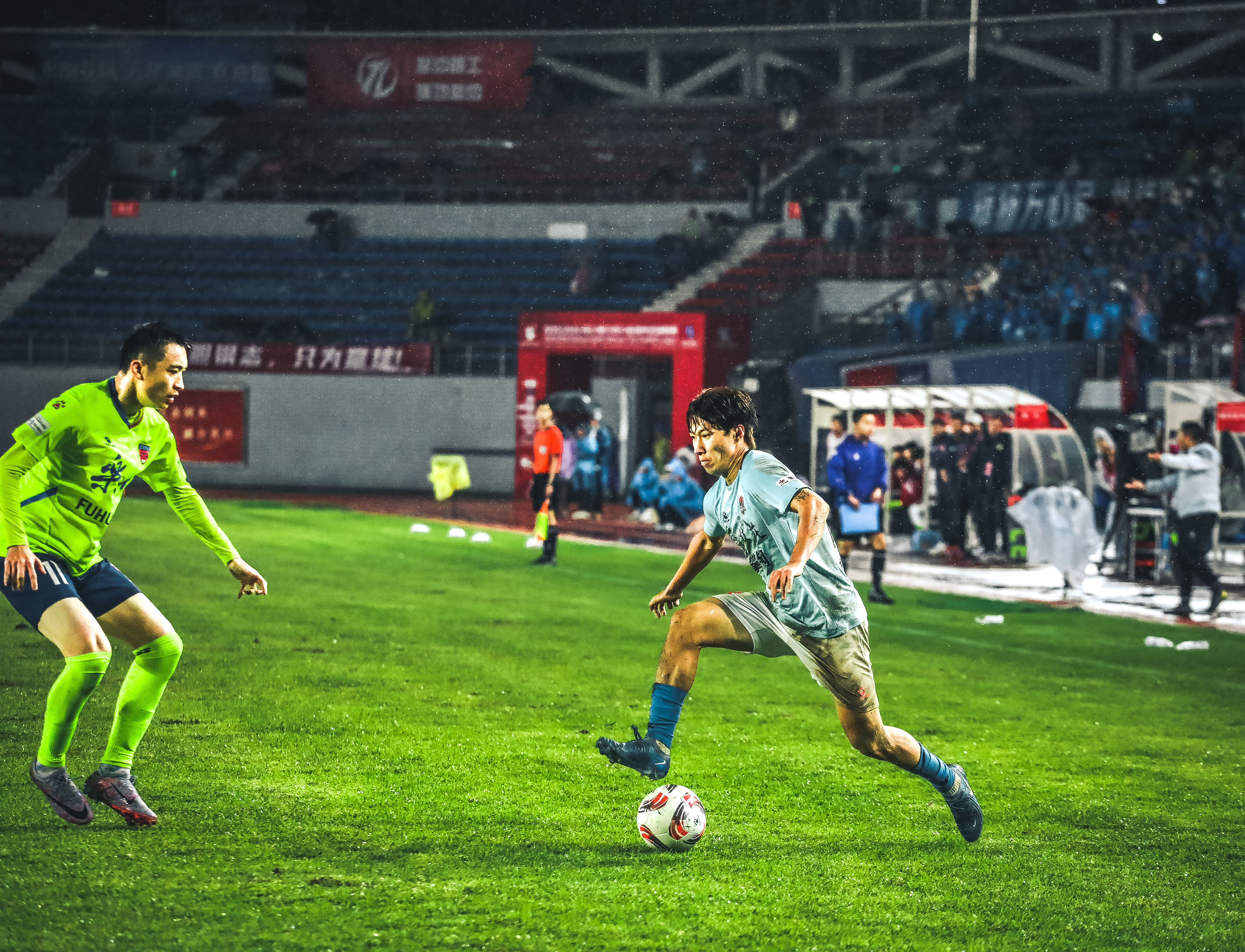19时35分,比赛正式开始,双方拼抢节奏极快,在雨中你来我往,多次制造进球机会。比赛第29分钟,乐山队率先攻破攀枝花球门,获得1分。