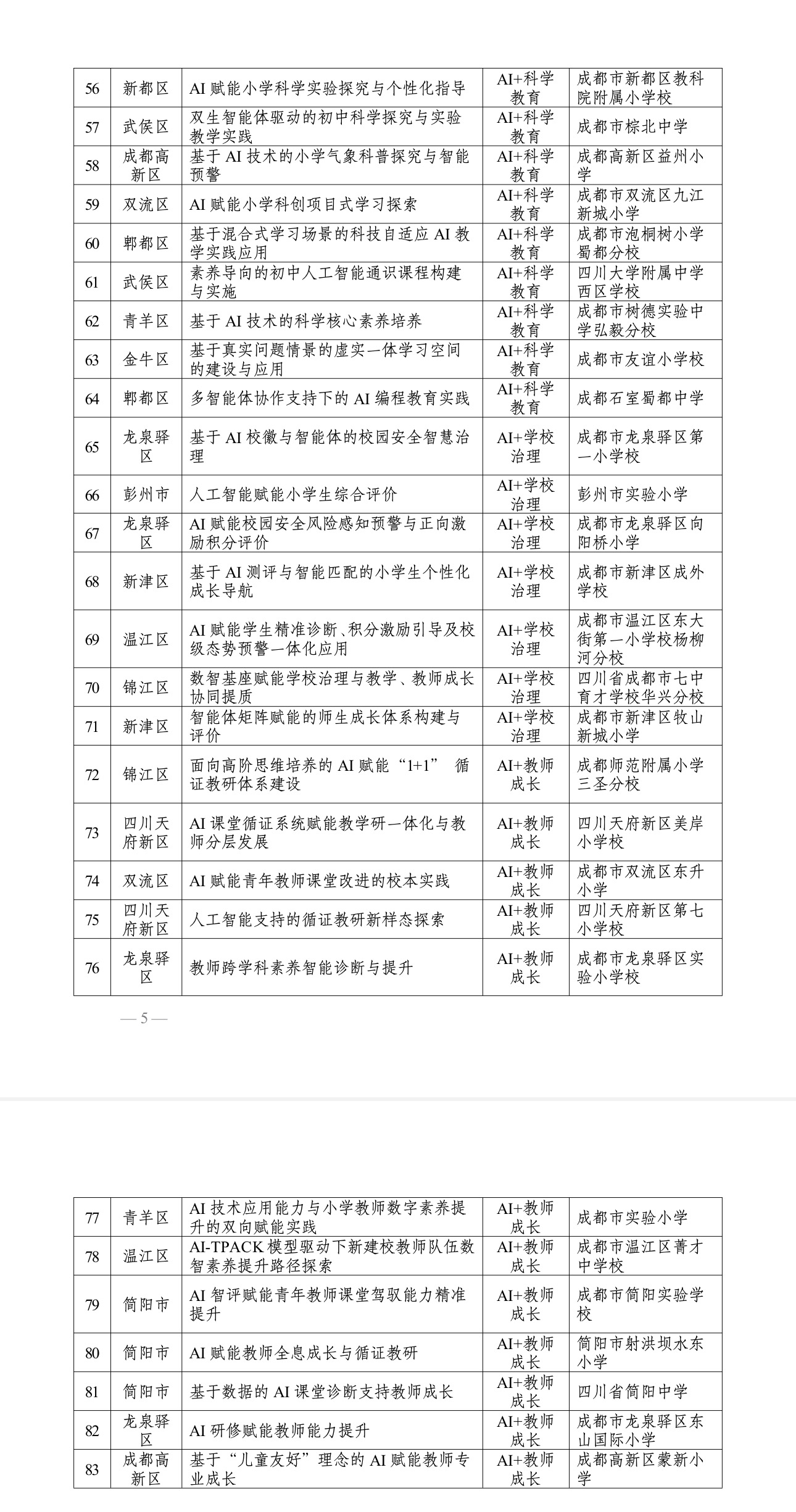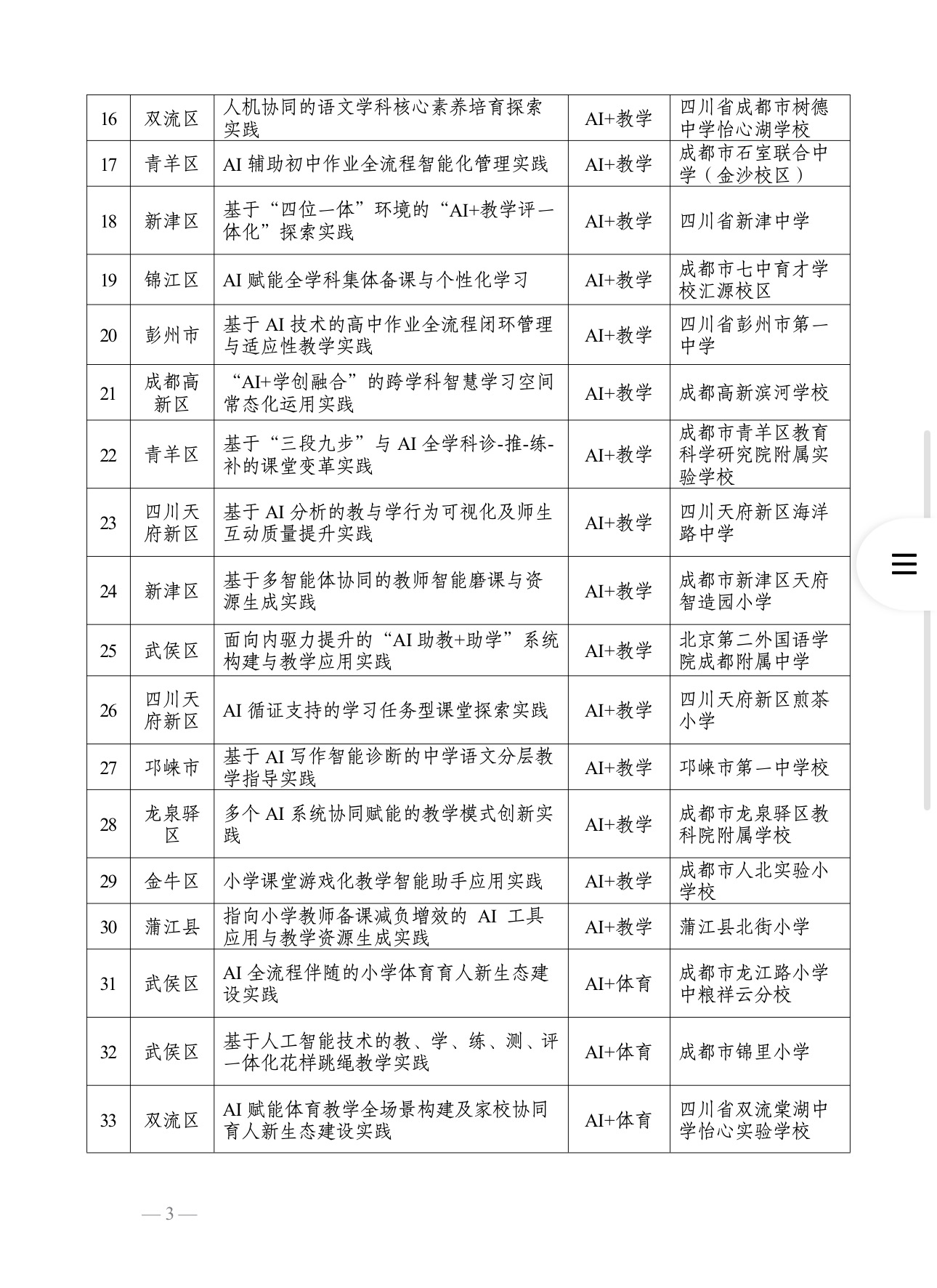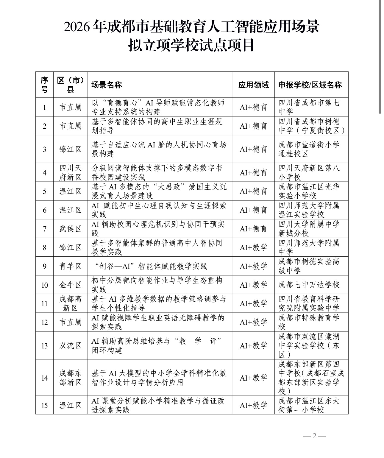 一年后,第二批名单来了——再添83所试点校,成华区、锦江区、双流区、彭州市4个区整体推进。