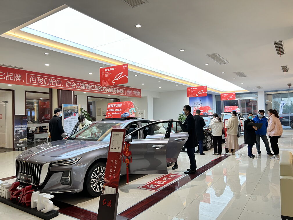 元旦期间,顾客在马鞍山金福联红旗汽车体验中心选购汽车。(受访者供图)