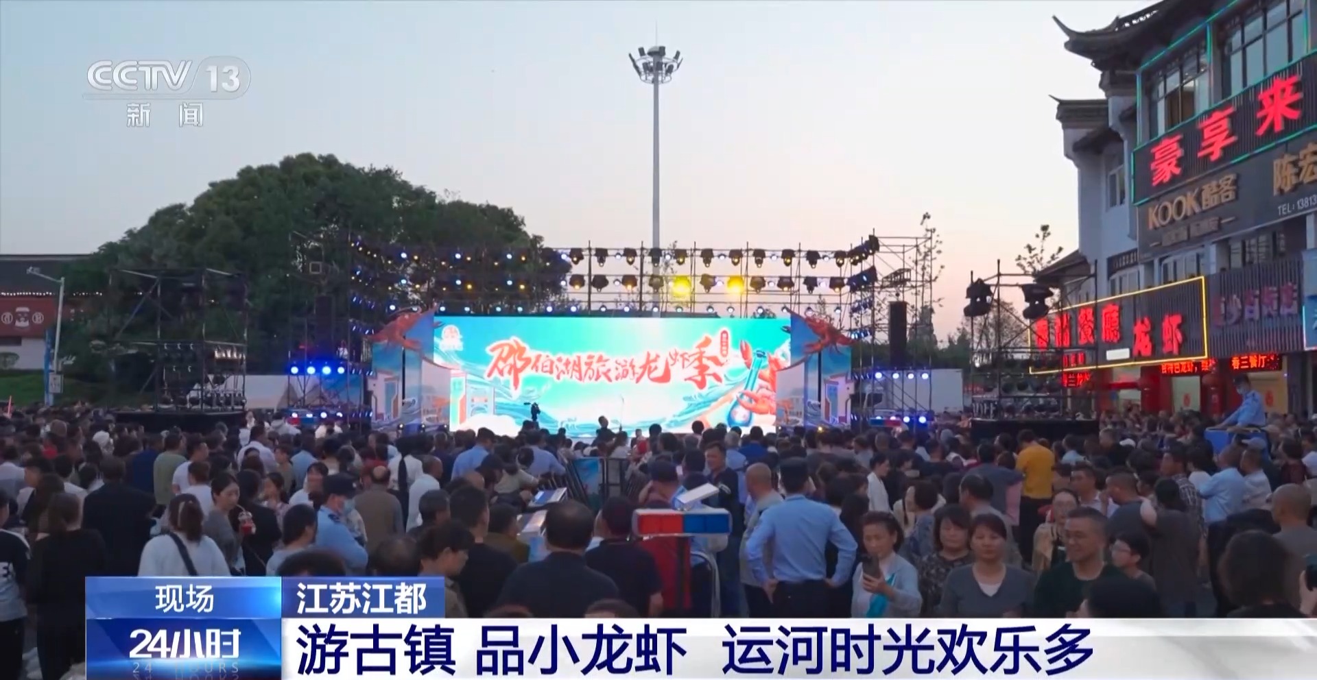 在江苏扬州的邵伯古镇,夏夜龙虾季活动的开展引来大量游客前来品尝美食,打卡运河美景。一字排开的美食摊位座无虚席,人气爆棚,醉人的龙虾香气溢满古镇。目前邵伯有300多家饭店经营龙虾,旺季日销龙虾10多吨,年餐饮产值过亿元,带动从业人口5000多人。