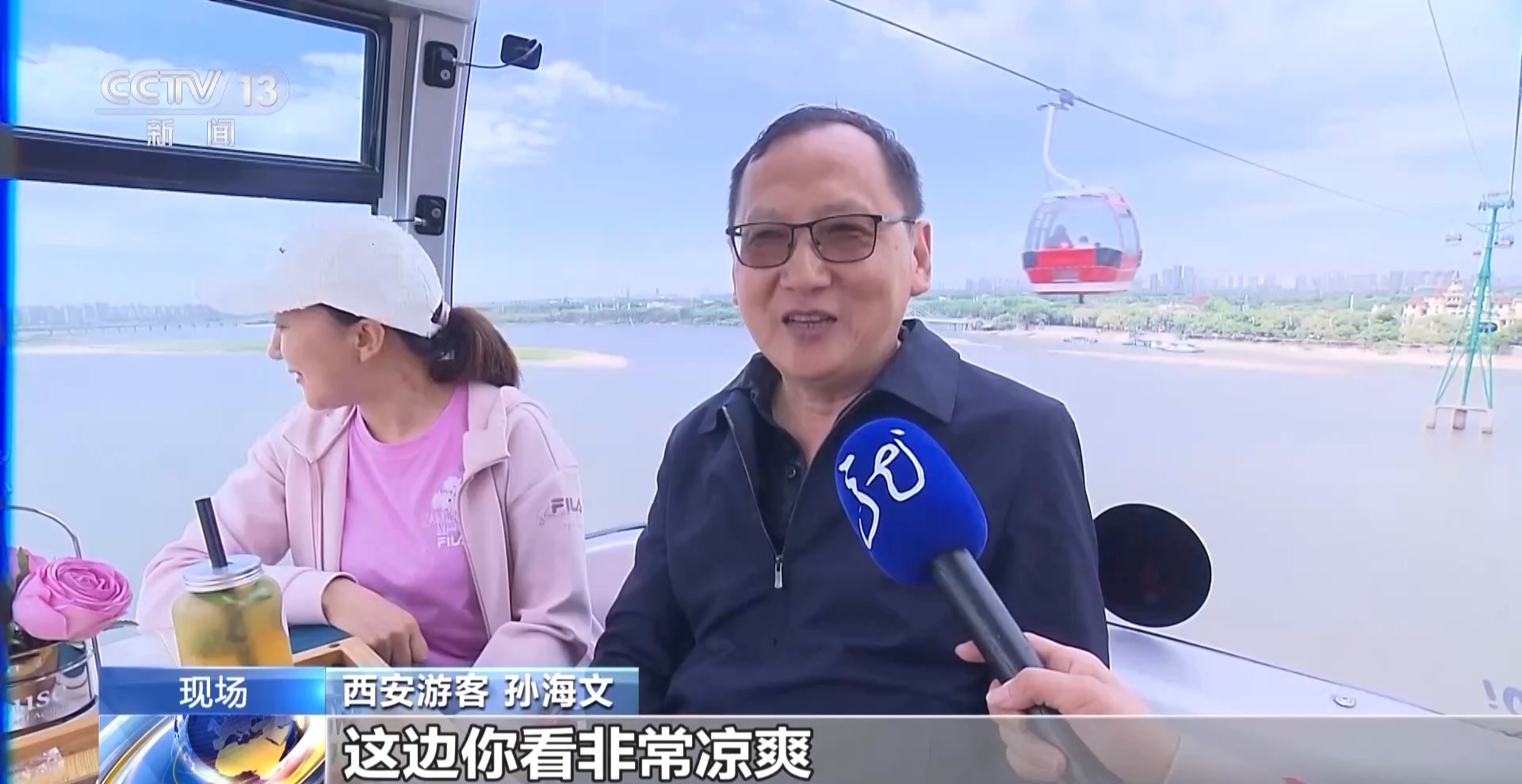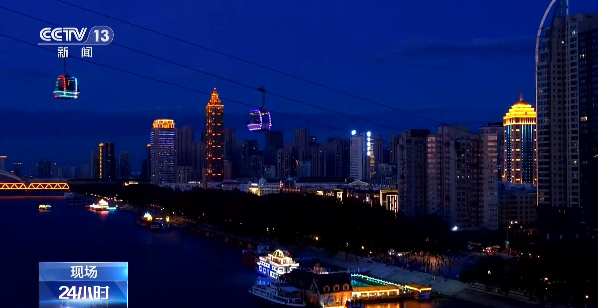 西安游客 孙海文:比我想象中的更美好,我那里现在30多度,已经有点开启桑拿模式了,这边非常凉爽,穿这个衣服很舒服。在这么高的缆车上,在松花江上吃着美食,可以说是人生一次非常不平凡的体验吧。