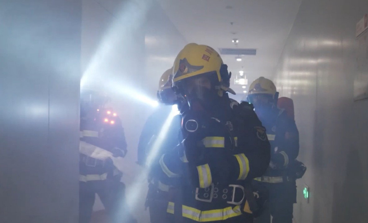 在疏散过程中,发现某处电器线路发生短路引发火灾,火势迅速蔓延,监控室收到到消防主机报警并确认后,立即启动应急预案和拨打119报警电话。火灾扑救组接到指令后,迅速组织人员利用灭火器和室内消火栓进行火灾先期处置。同时消防控制室开启防火卷帘门和迫降电梯等设施。消防救援力量到达现场后,第一时间询问知情人,了解现场情况。随后,消防救援员立即展开行动,在消防指战员的努力下,火灾被成功扑灭。