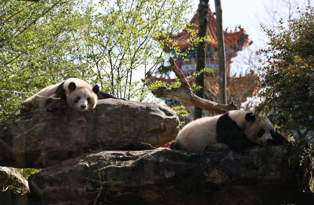 博瓦勒野生动物园位于法国中部的圣艾尼昂市。大熊猫“圆梦”去年回国后,目前共有4只大熊猫旅居法国,家长“圆仔”“欢欢”,还有它们的双胞胎女儿“欢黎黎”“圆嘟嘟”。