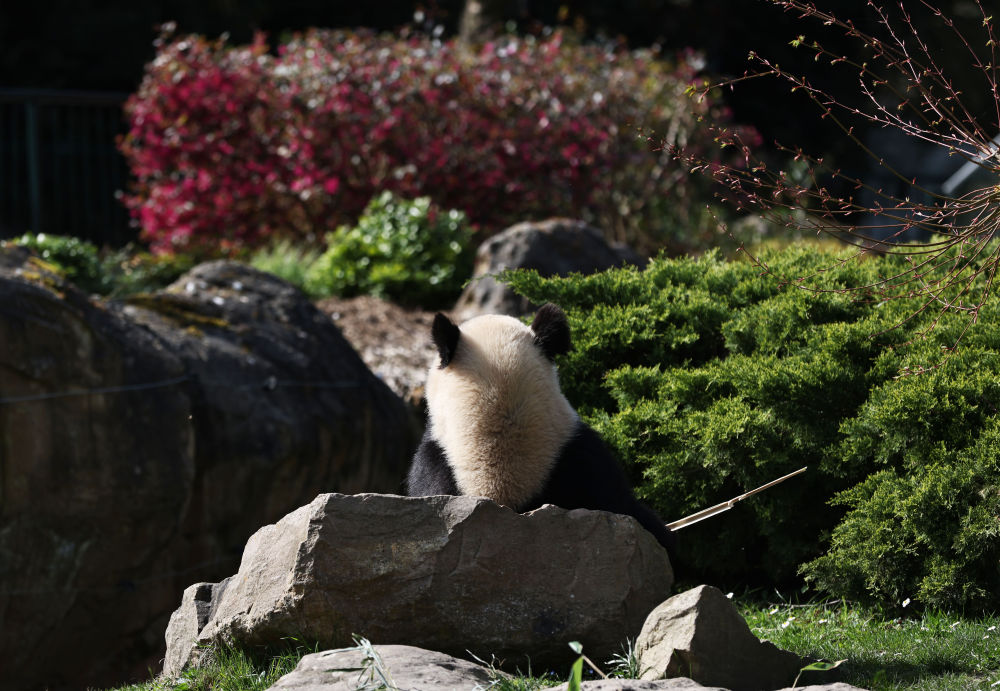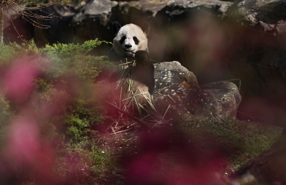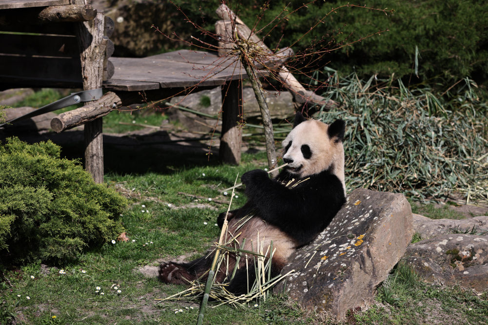 ↑这是3月22日在法国圣艾尼昂的博瓦勒野生动物园拍摄的大熊猫“欢欢”。