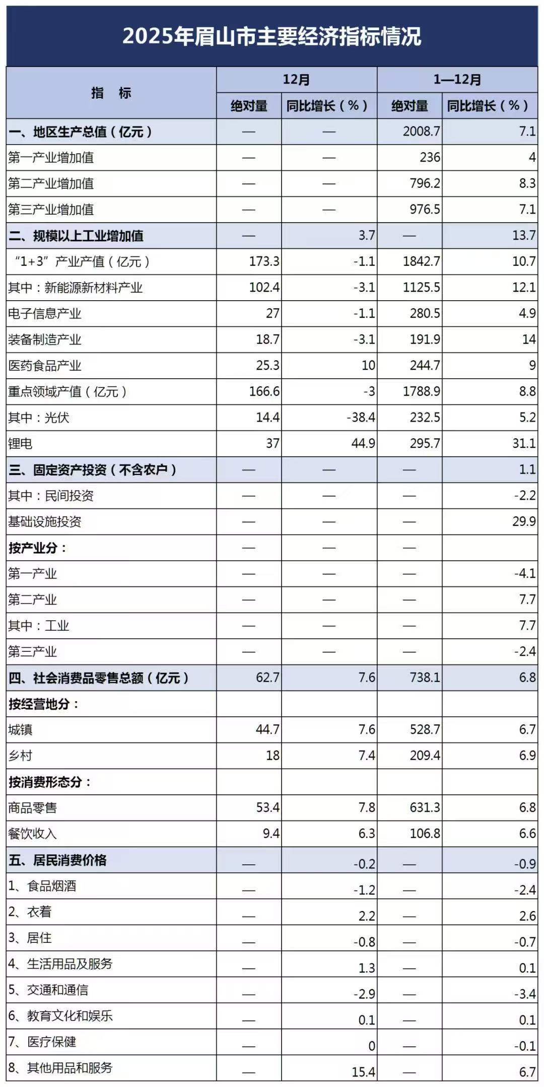 2025年眉山主要经济指标 (图片来源:眉山市融媒体中心)