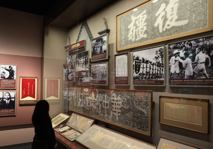 10月25日,参观者在中国人民抗日战争纪念馆参观《不屈的宝岛 丹心向祖国——台湾同胞抗日史实展》。新华社记者 张晨霖 摄