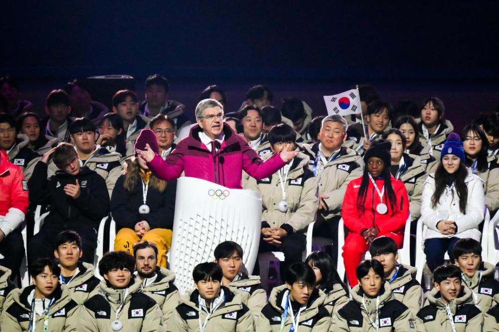 韩国总统尹锡悦宣布江原道冬青奥会开幕。国际奥委会主席巴赫致辞,他表示,这是青少年运动员的时刻,他们正在追随那些创造过奥运历史的体育偶像的脚步。