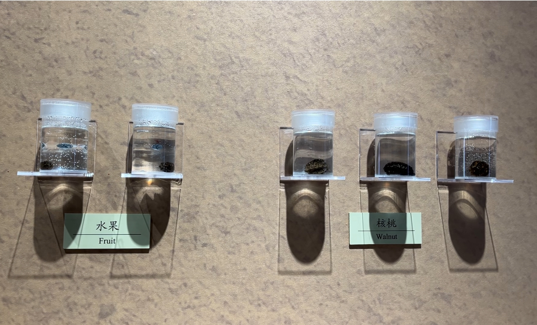 濛溪河遗址陈列室展示出土植物种子
