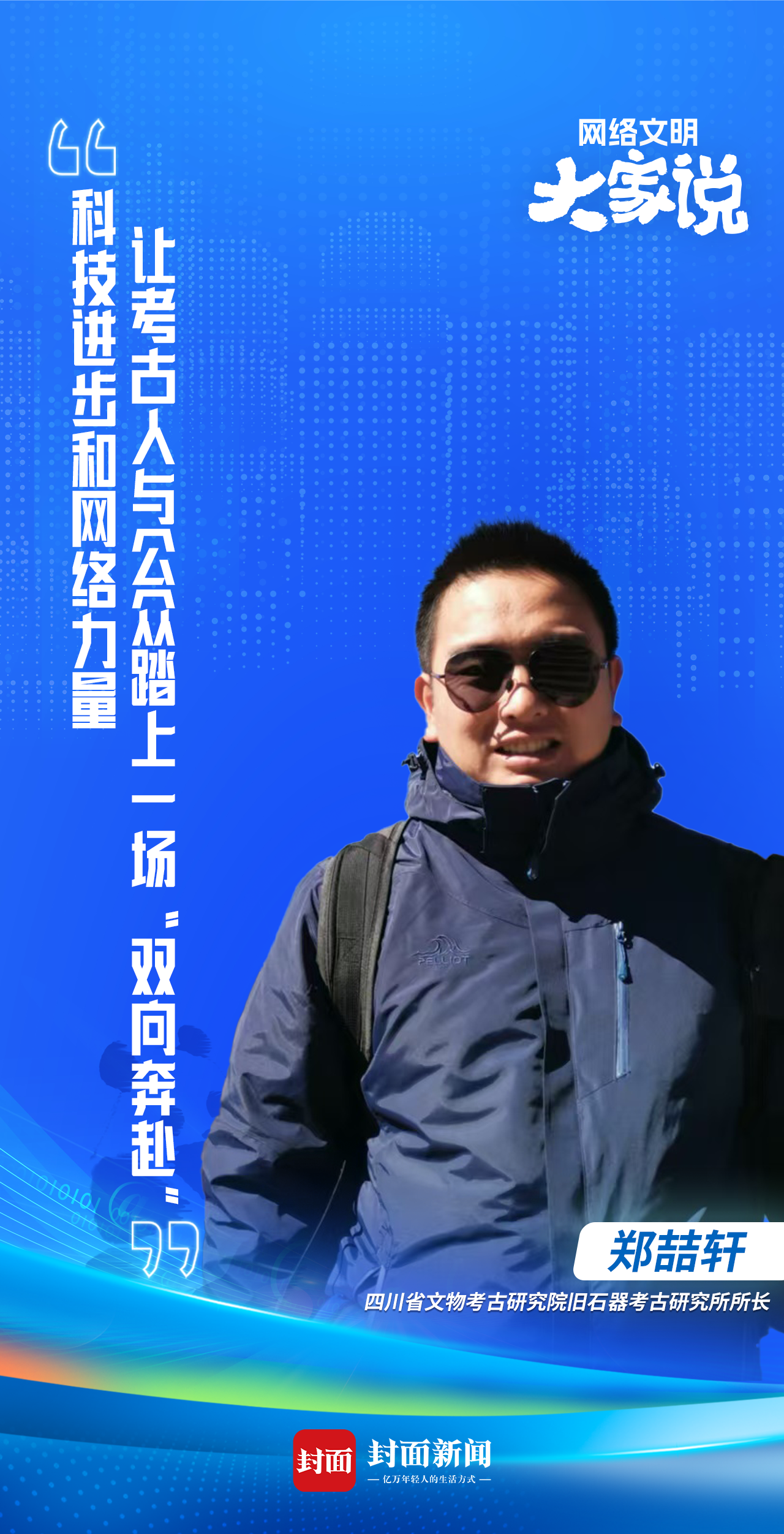 8月27日,2024年中国网络文明大会“未来之夜——让科技之光点亮网络文明”网络互动引导活动在电子科技大学举行。活动现场,四川省文物考古研究院旧石器考古研究所所长郑喆轩,与四川省文物考古研究院三星堆遗址工作站站长、三星堆研究院学术执行院长冉宏林一起,以《遇见文明“蜀”光》为主题,进行了分享。
