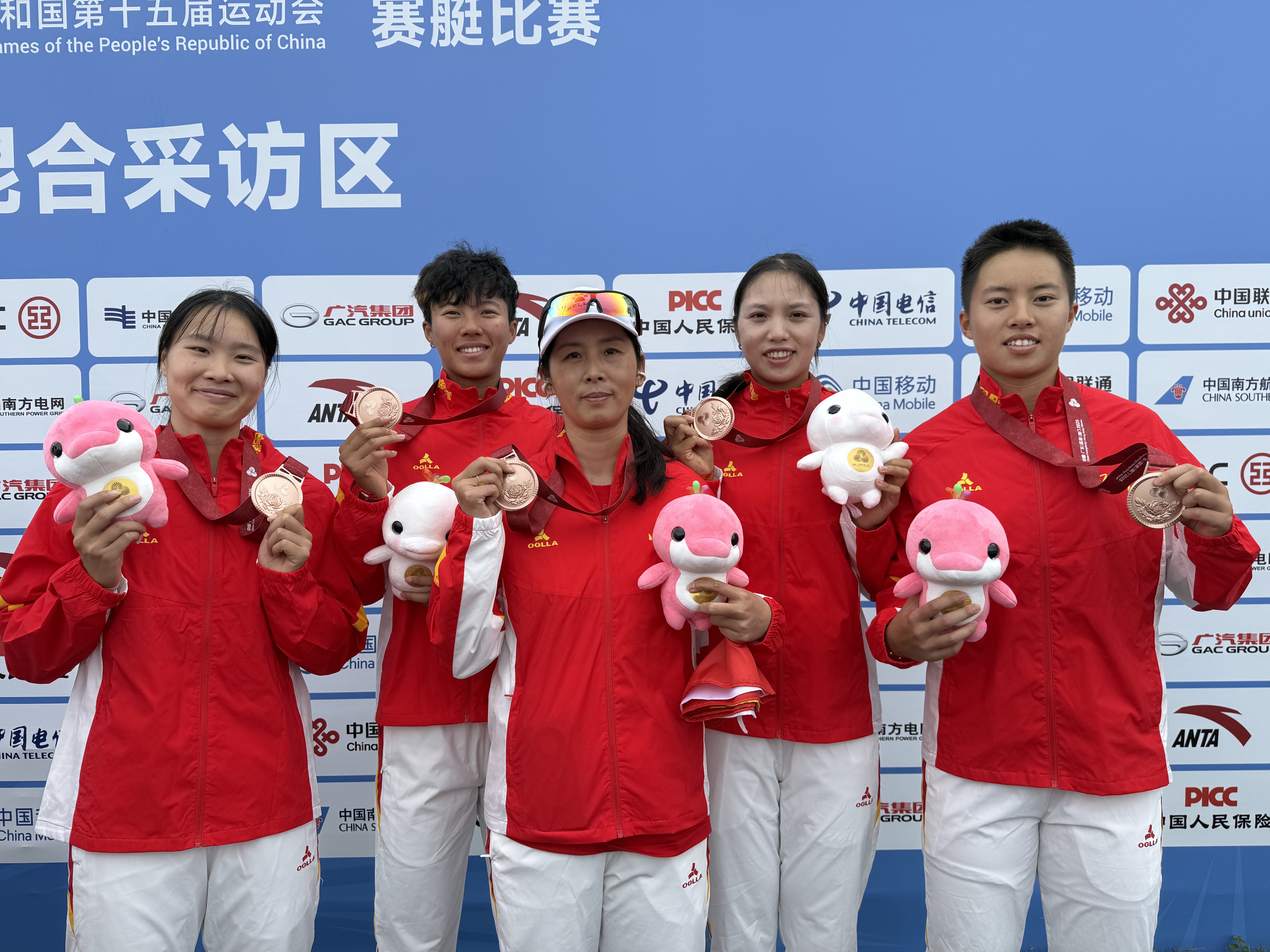 在11日的女子四人单桨决赛中,吴佳琪、肖舒尹、罗依涵和万顺馨蓉组成的赛艇出发阶段就排名第二,面对全国手组成的湖北队发起强势冲击,直到750米阶段都是死死咬住对手,不过在最后的阶段体力不支被山东队反超获得第三名。