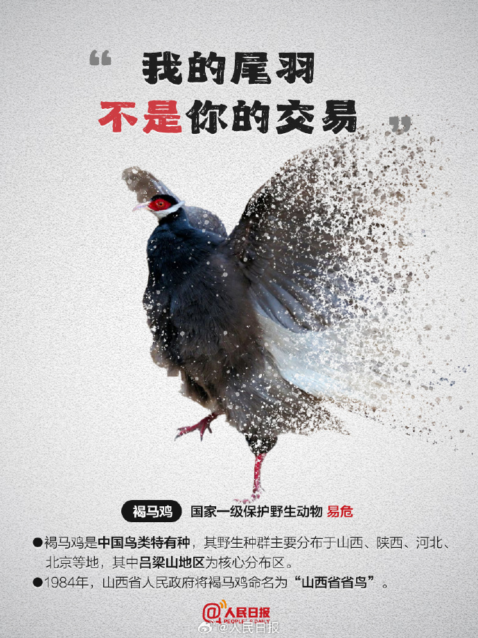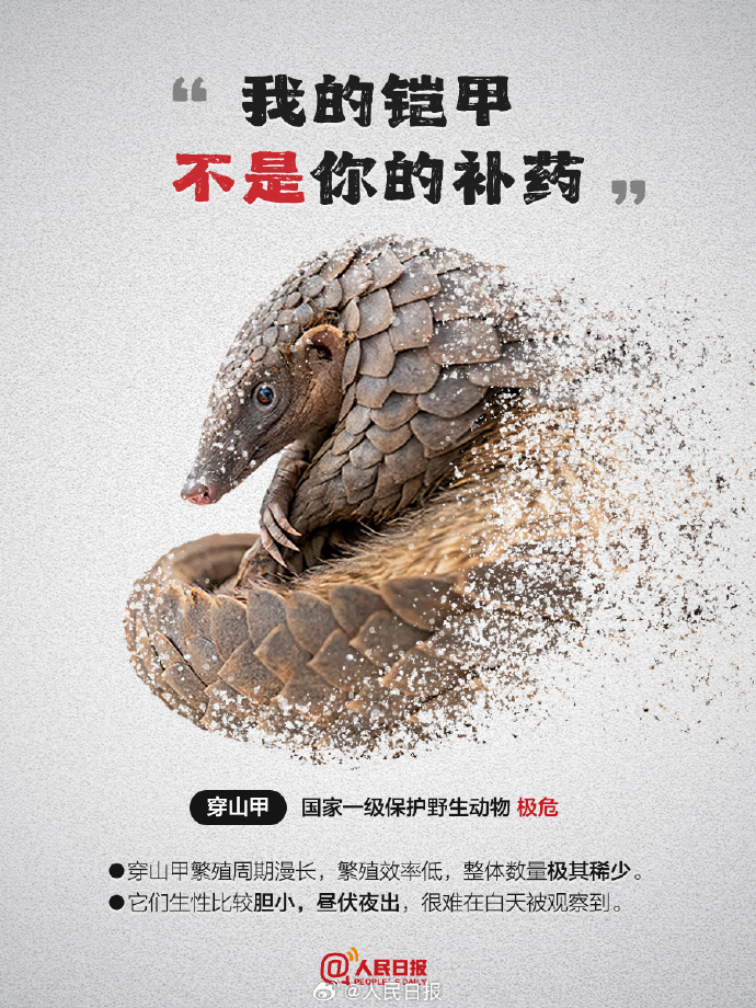 因为珍稀所以更珍惜! “我的尾羽,不是你的交易”“我的皮毛,不是你的皮草”“象牙在我自己的嘴上才好看”……动物们的内心独白,也是我们需要回答的生态考题。