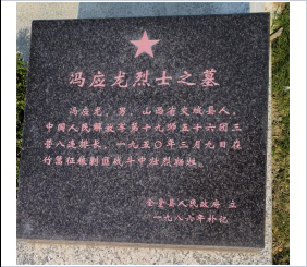 冯应龙,男,山西吕梁交城县人,中国人民解放军第19师排长,1950年3月9日在金堂县竹篙镇牺牲,安葬于金堂县烈士陵园。