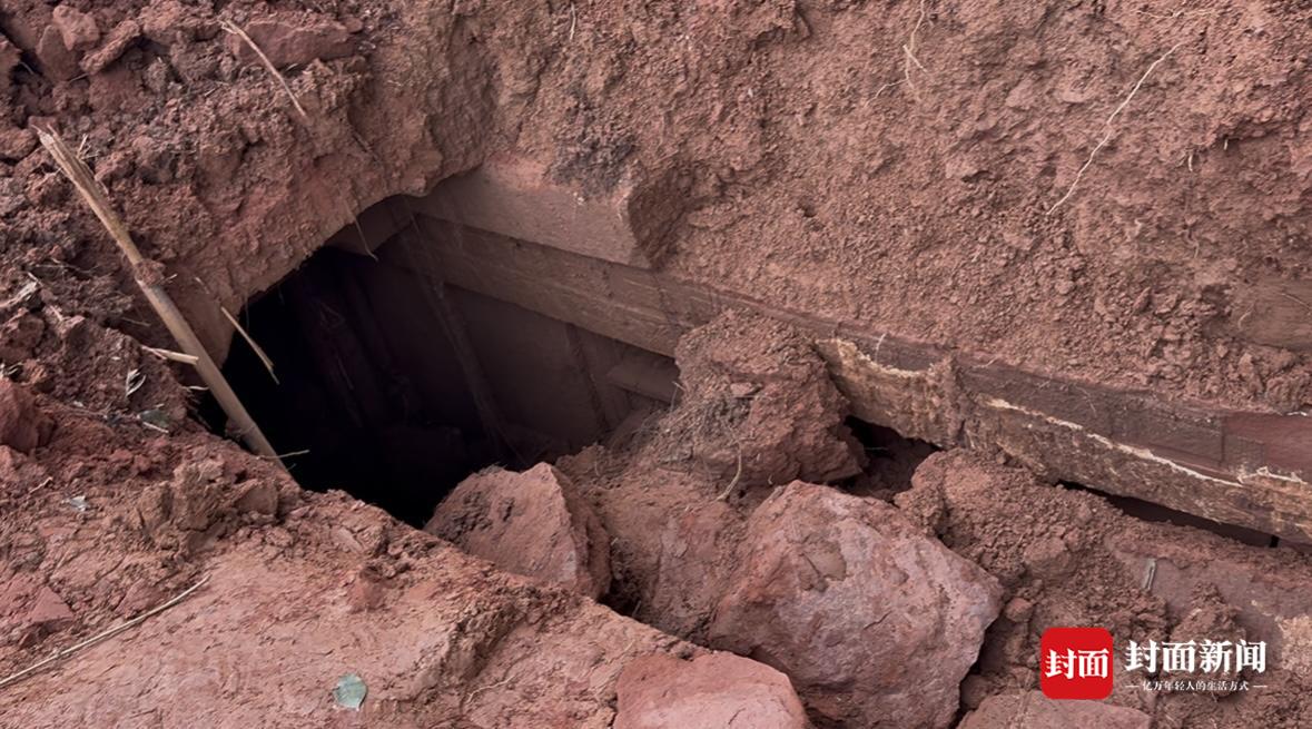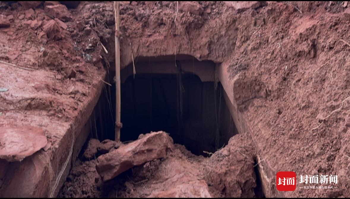 古墓通道墙壁上有雕刻的花纹,通道尽头有一扇门关闭着,未挖掘开。现场工作人员告诉记者,发现古墓后,他们第一时间向专业部门报备,当天已有相关工作人员到现场了解情况,大家还不清楚古墓里面有什么。