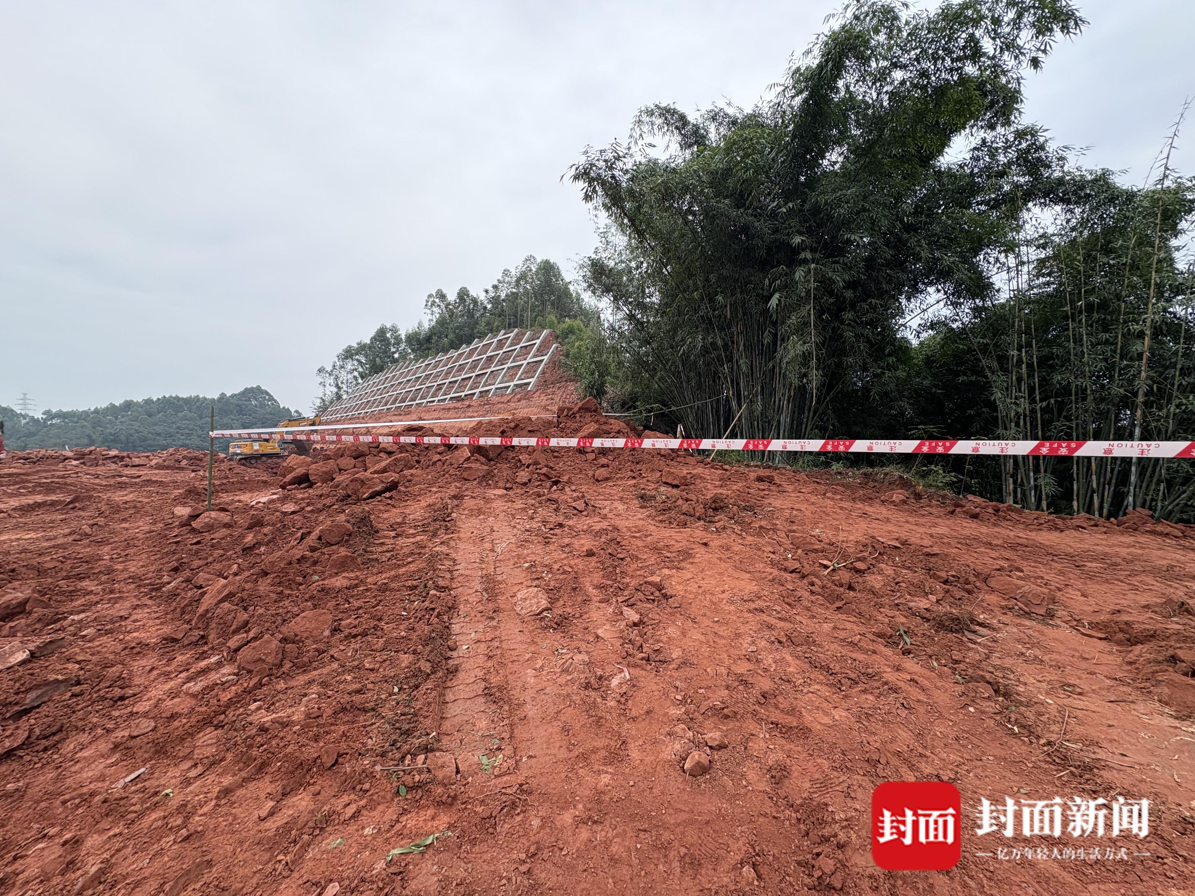 当天,封面新闻记者在现场看到,古墓所在位置为致江路桥至S305线道路新建工程工地内,古墓四周已经拉起警戒线,禁止人员出入。