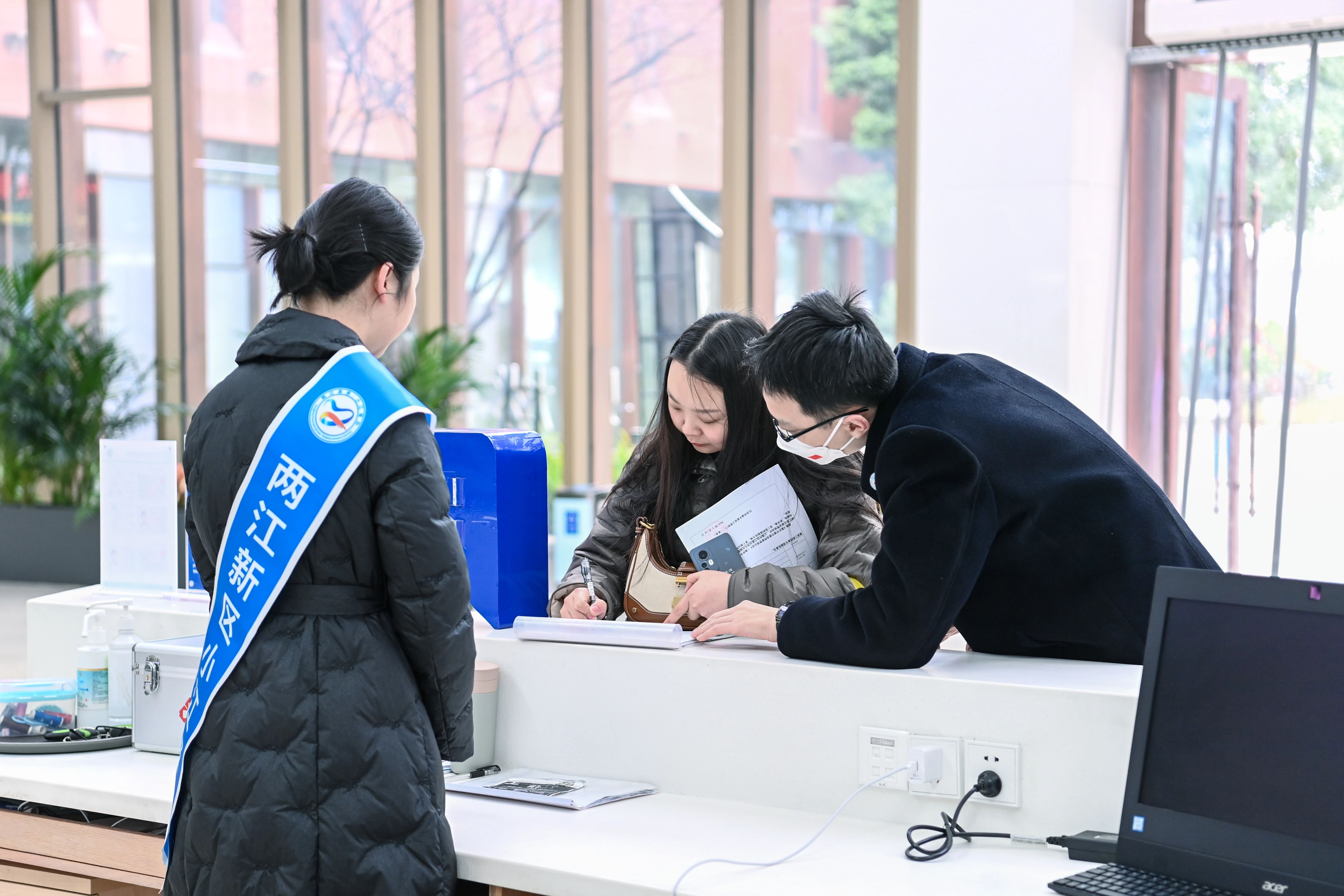 两江新区政务大厅,工作人员正在为办事市民服务。王加喜 摄