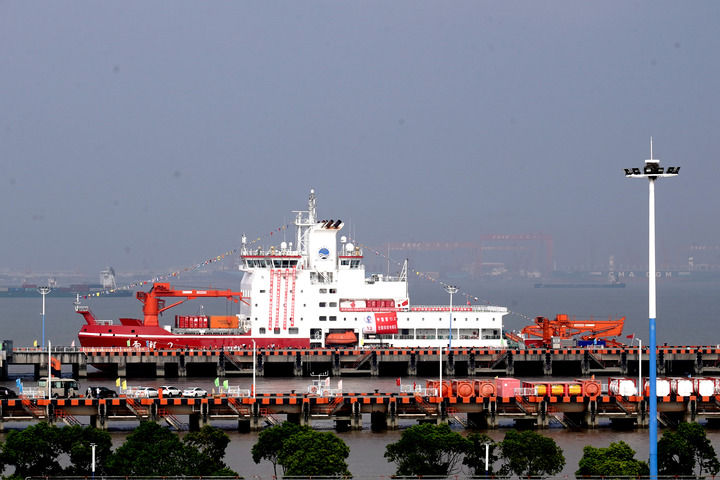 9月27日,“雪龙2”号极地科考破冰船停泊在中国极地考察国内基地码头。当日,由自然资源部组织的中国第13次北冰洋科学考察队乘“雪龙2”号极地科考破冰船返回上海,标志着中国第13次北冰洋科学考察任务圆满完成。新华社记者 张建松 摄