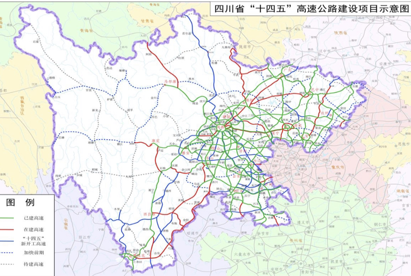 目前,四川在建项目(路段)39个、3593公里,包括成南扩容、成乐扩容,沿江高速、乐西高速以及2022年新开工的西昌至香格里拉、资中至铜梁、天府新区经眉山至乐山、京昆汉中至广元扩容等项目。