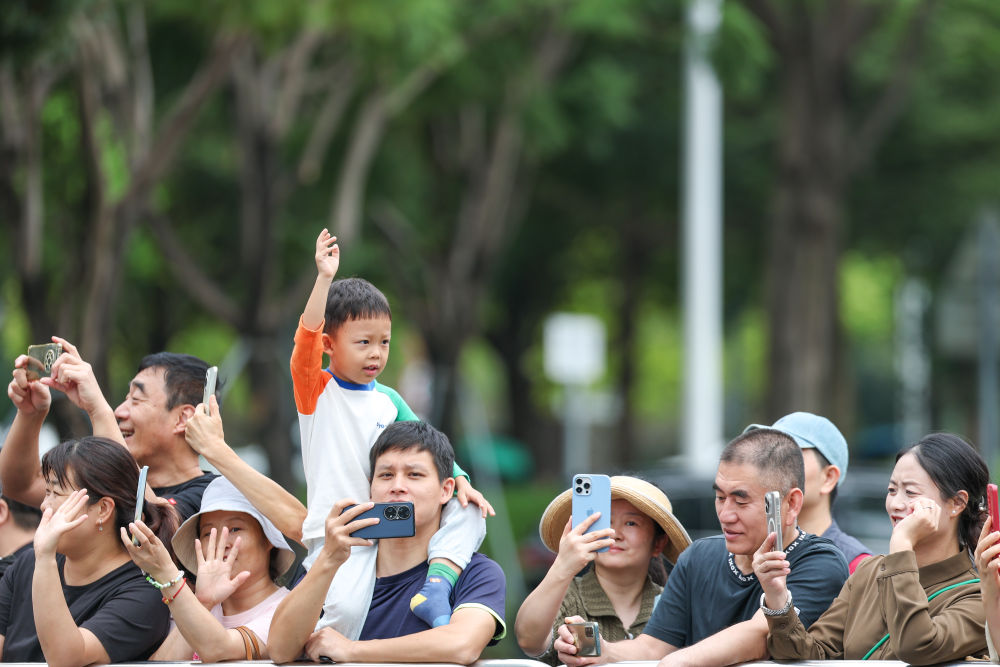 ↑ 观众在观看火炬传递活动。新华社记者 黄伟 摄