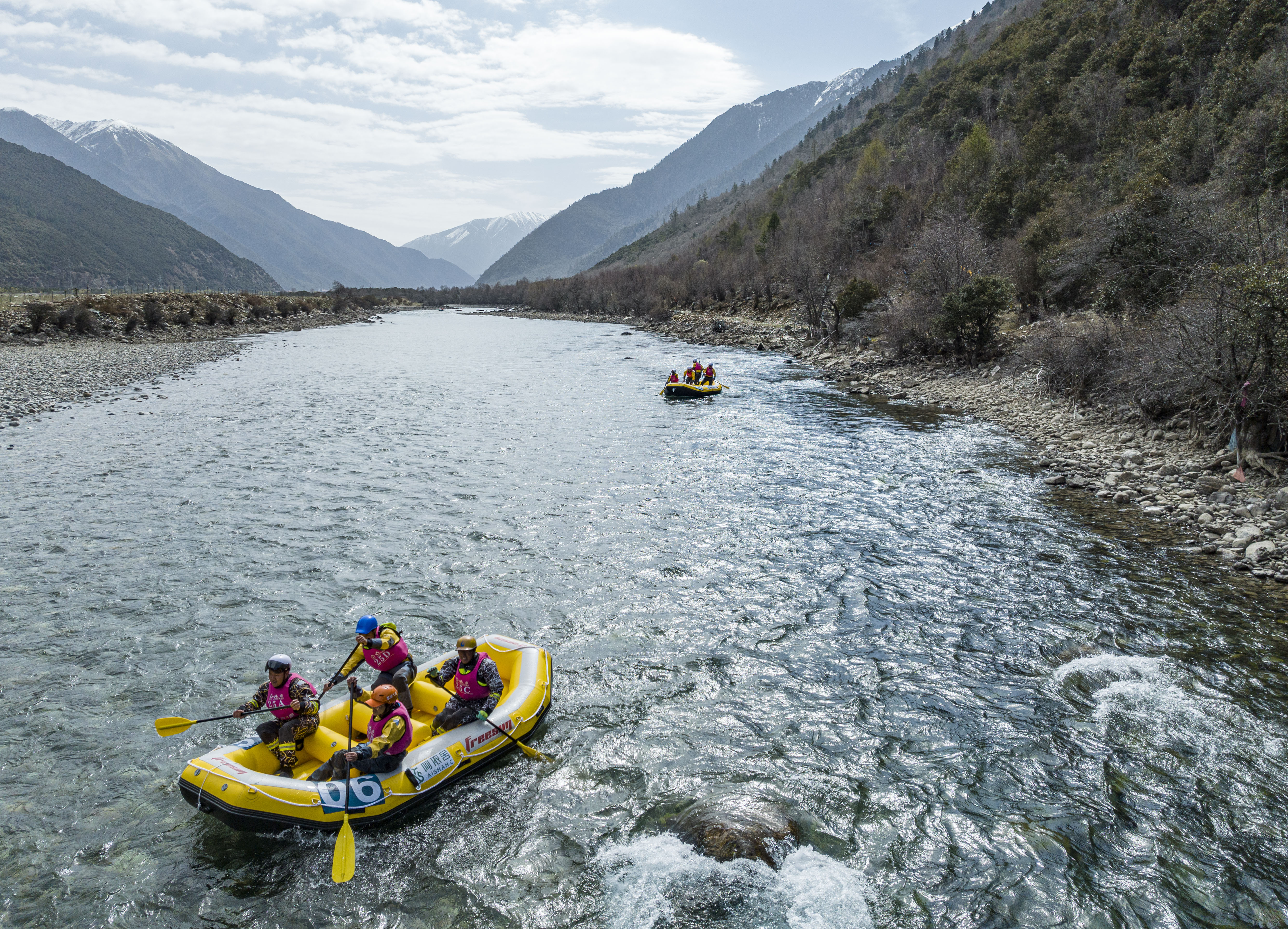 为期两天的漂流联赛在西藏林芝市工布江达县巴松措国家森林公园内进行。据介绍,此次比赛是国家级漂流比赛中海拔最高的一站,也是2023年中国漂流联赛全国首站。来自全国各地的25支队伍不仅要比拼体能和技术,还要面对高反带来的挑战。