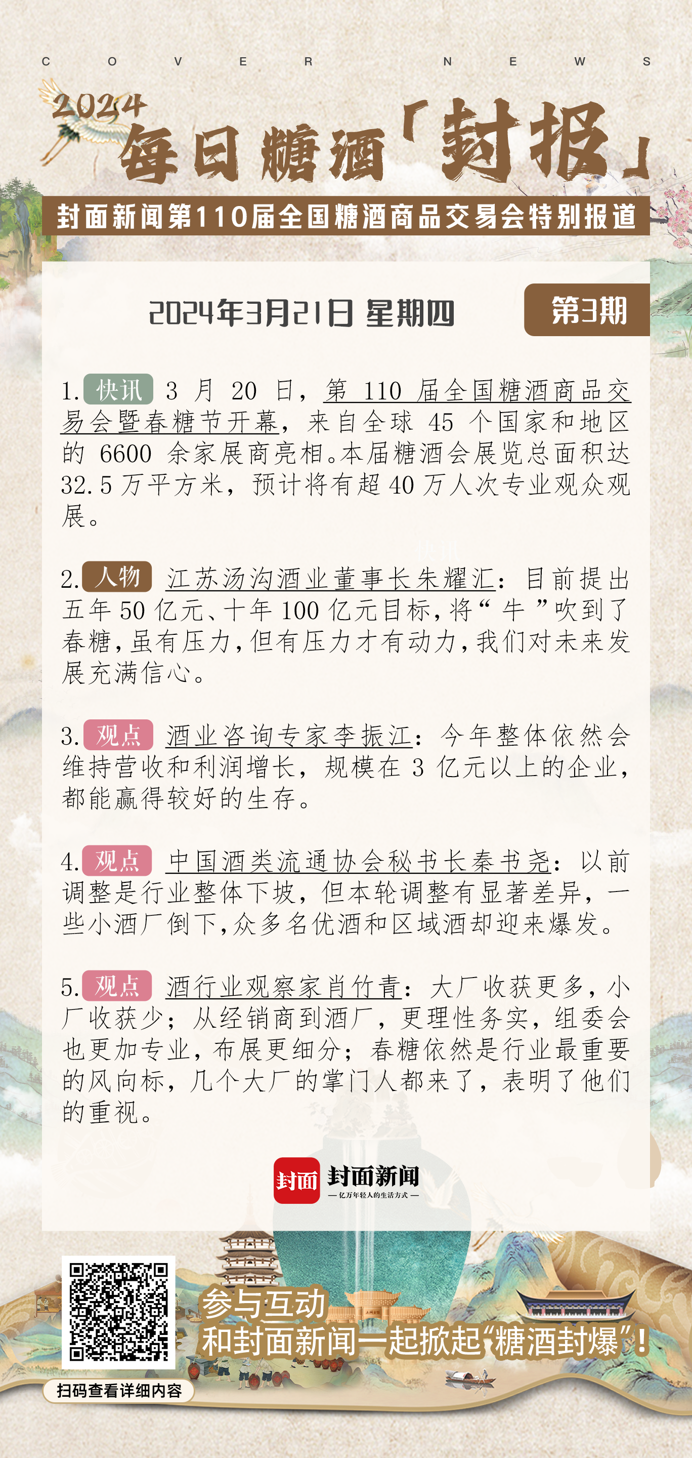 糖酒封报丨第3期:本届糖酒会观众预计超40万人次 业界看好3亿元以上酒企发展 封面区块链 该文章已上链 > 封面新闻 2024-03-26 11:23 66470 评论 2 平平和安安 2024-03-27 发表于四川 经济好,喝酒庆祝,生活美滋滋。 我是传说 2024-03-27 发表于四川 酒类市场回暖,干杯未来的繁荣! 我要评论