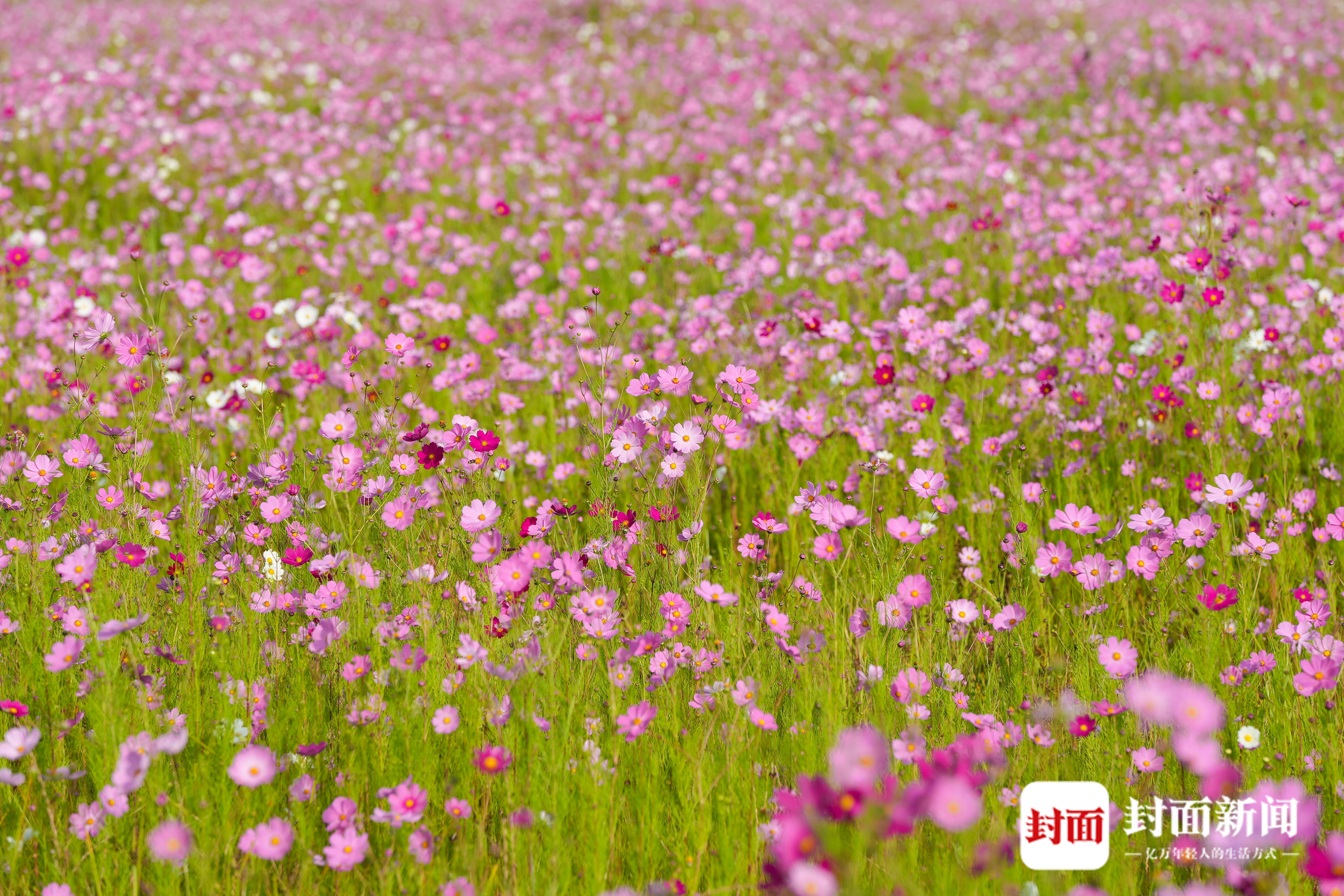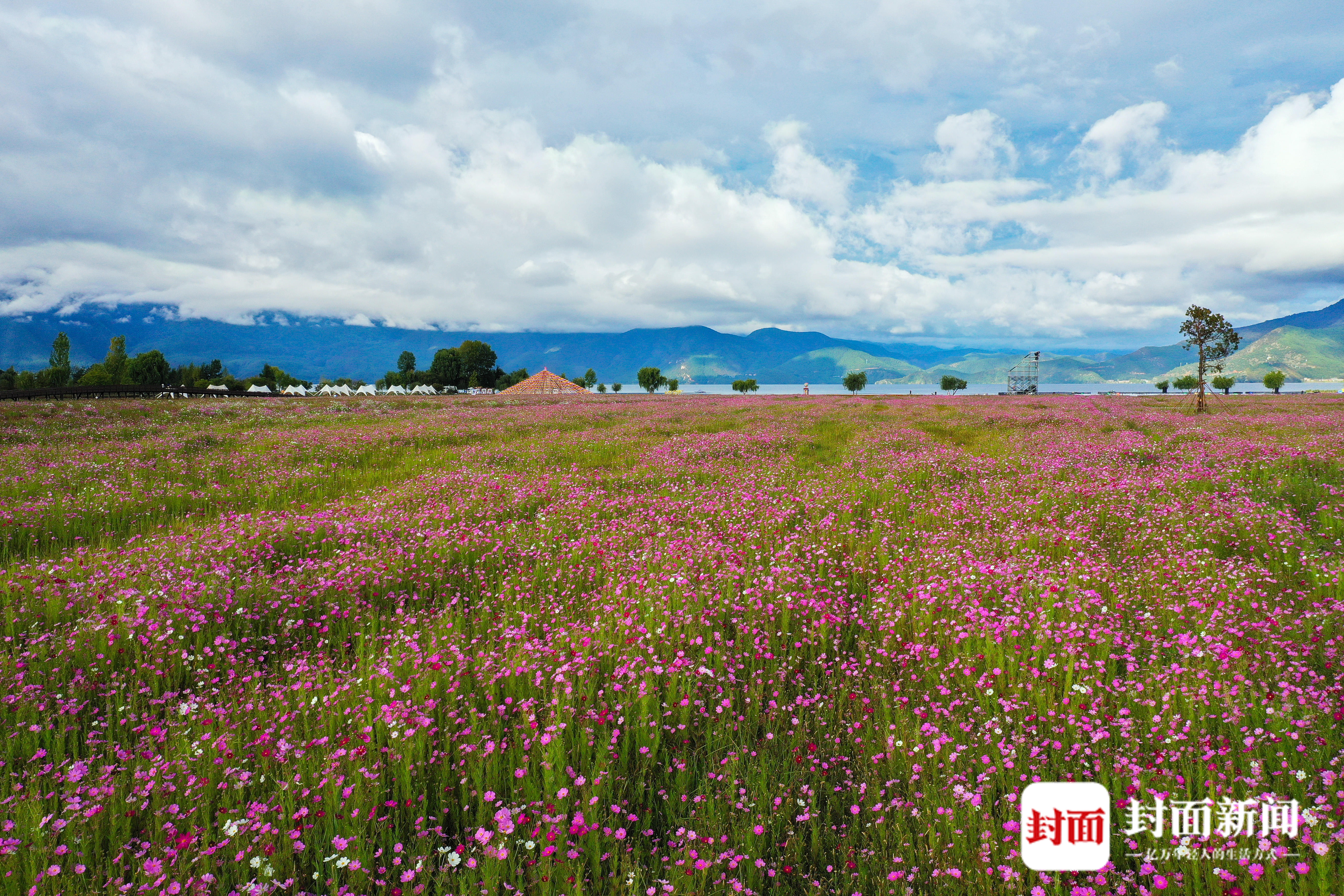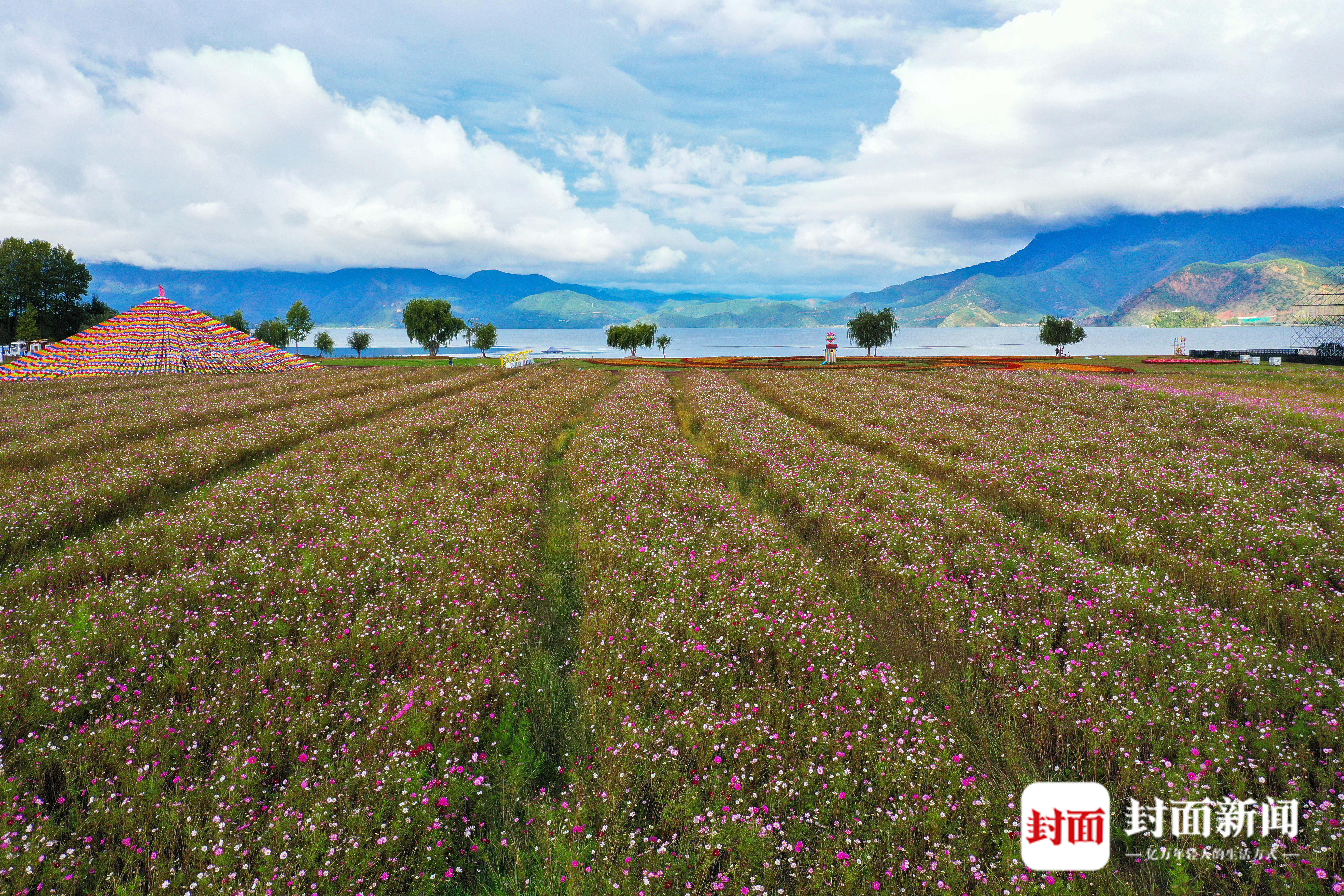9月底,四川省凉山州盐源县泸沽湖畔情人牧场,大片的波斯菊进入盛花期,形成了一片壮观的粉色花海,美不胜收。泸沽湖情人牧场修建有生态木栈道,其中1.5公里穿越花海,游客可在这里尽情拍照打卡。今年国庆中秋假期,花海将迎来最佳观赏期,到泸沽湖旅游,千万别错过这一“季节限定”美景。
