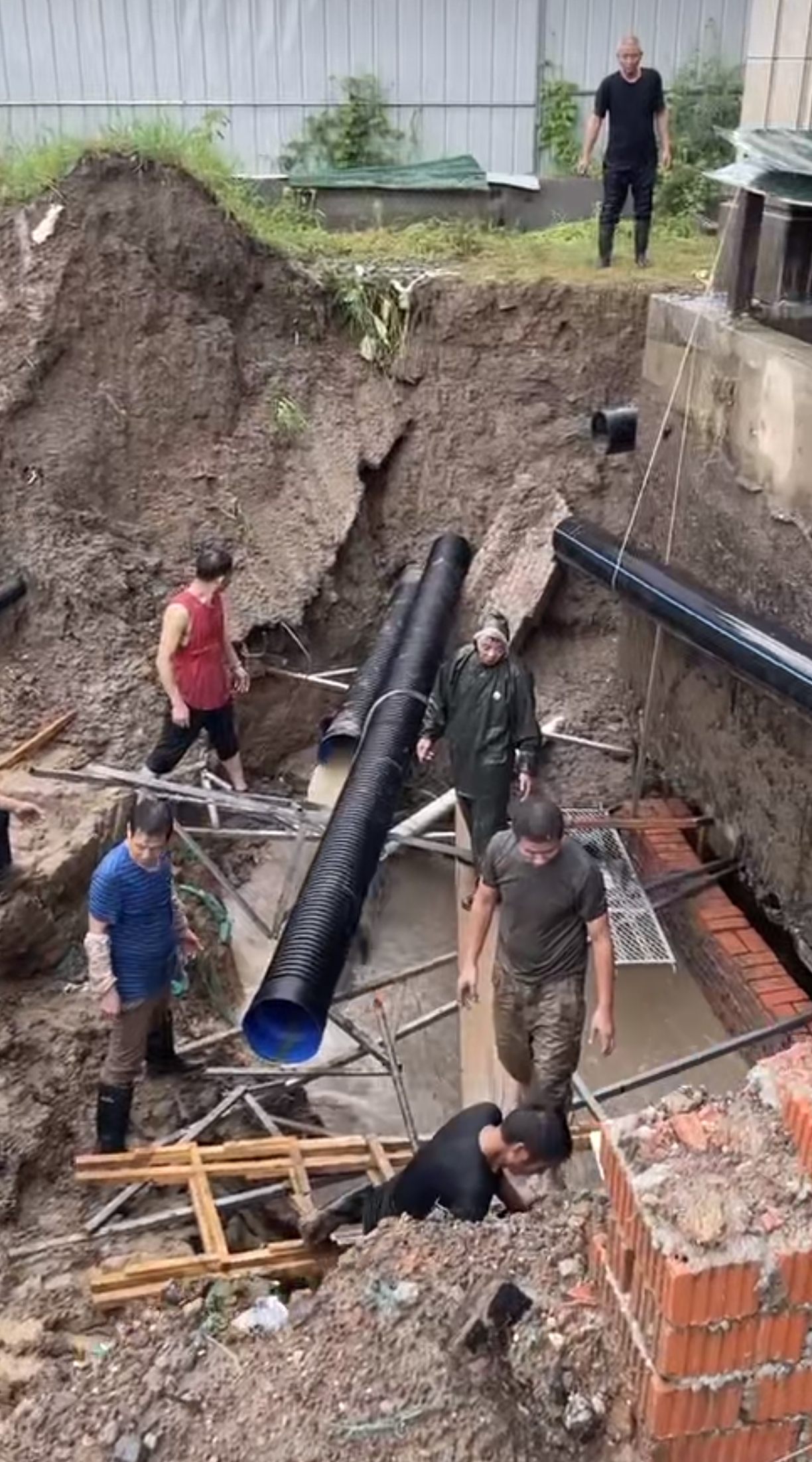 一张暴雨前拍摄的现场图片显示,在别墅旁的一块空地上,已经挖出了一个大坑,四周有围墙,有挖掘机正在作业。“其他业主拍的照片,可能当时不知道具体在干什么。”张先生称,物业紧急安排了抢修,“这个时候大家才知道,地下室都已经挖几米深了,然后就有人报警,还有人拨打了12345热线。”