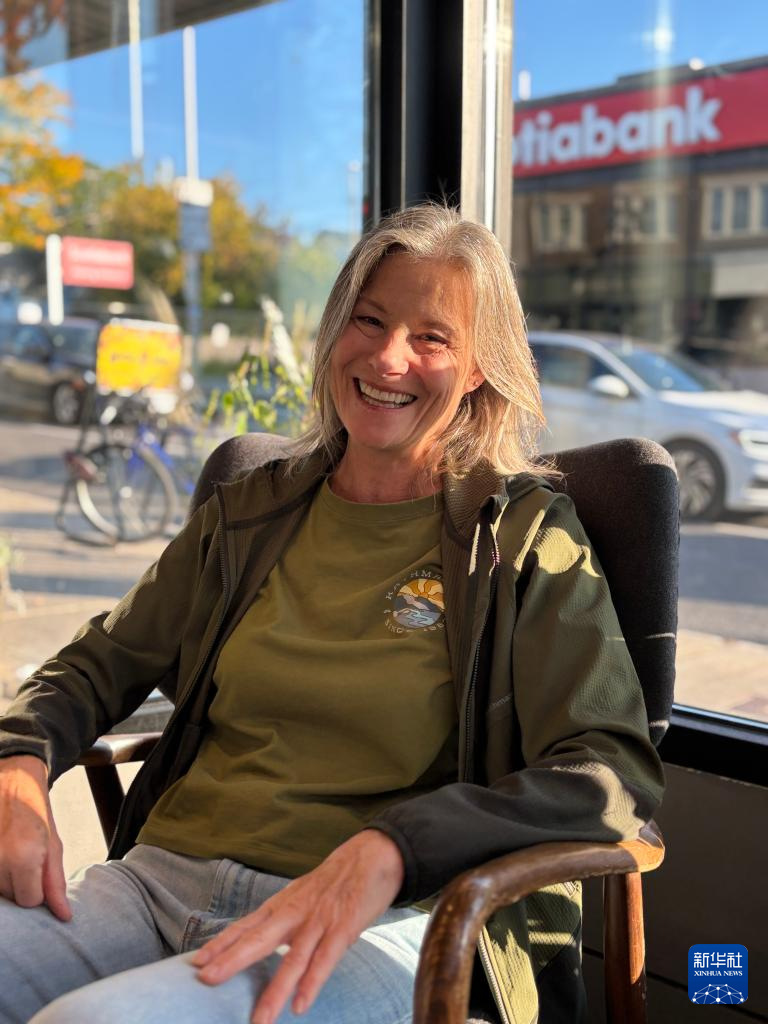 10月4日,佩姬·西利在加拿大渥太华一家咖啡馆接受记者采访。新华社发(陈敏摄)