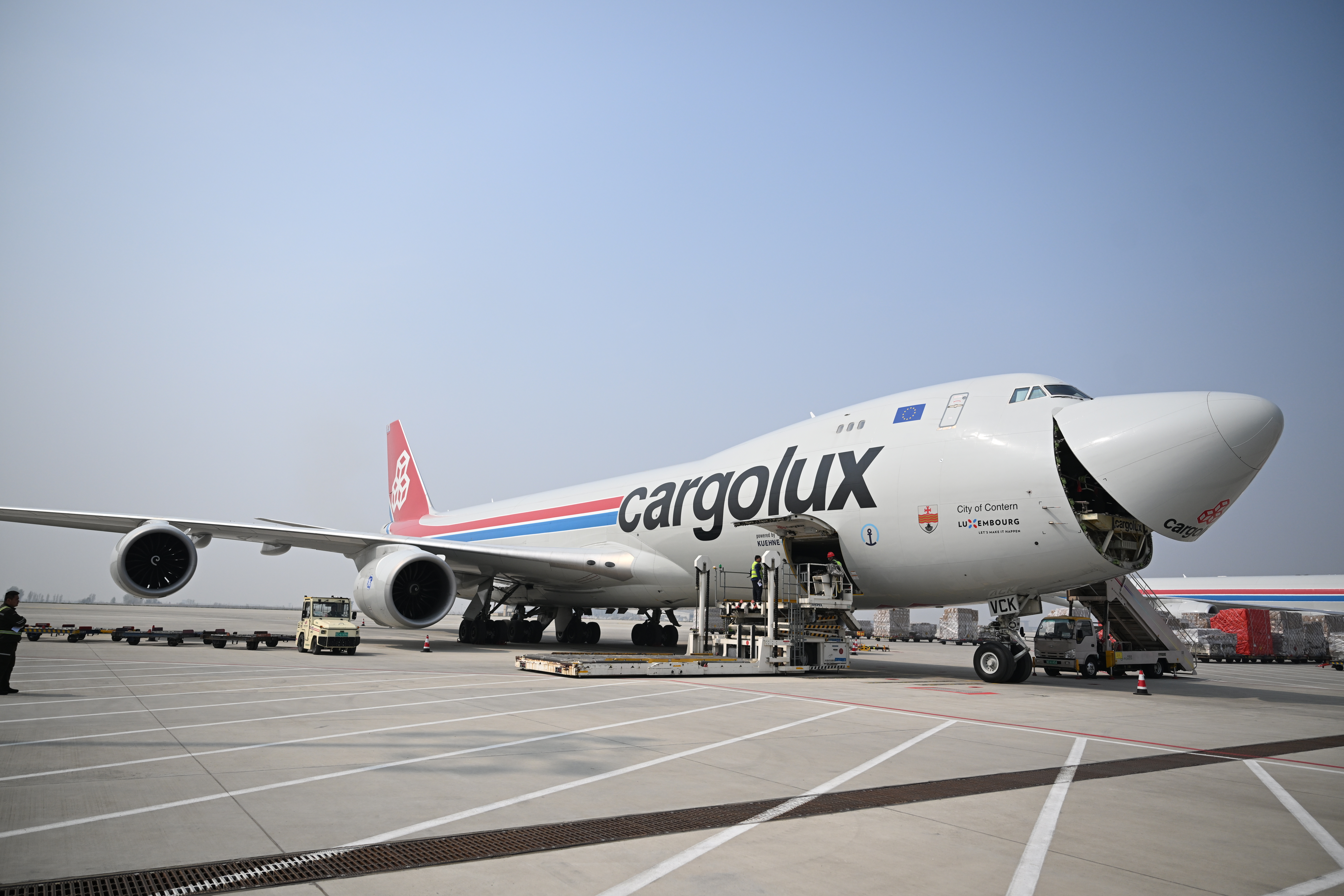 凌晨,在“空中丝路”上,一架架尾翼印有全球不同航司标识的货机有序起降。活螯龙虾、马来西亚榴莲……冷链运输卡车在货站码头排队,等着把货品运往全国各地。