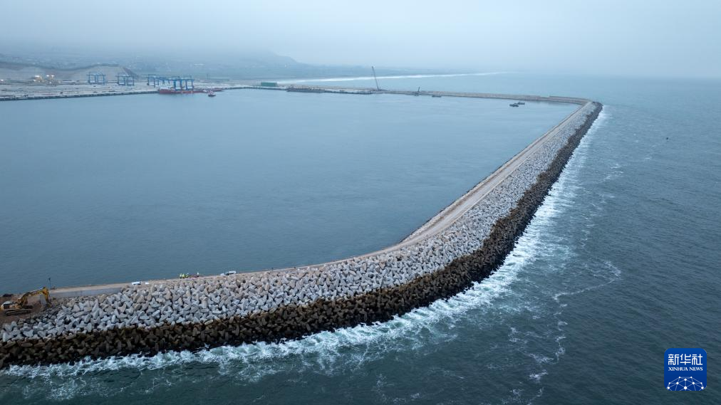 由中企控股和投资开发的钱凯港位于秘鲁首都利马以北的钱凯湾内。从空中俯瞰,约2.6公里长的防波堤像巨臂一般环抱住码头设施,以阻挡太平洋海浪的侵蚀。