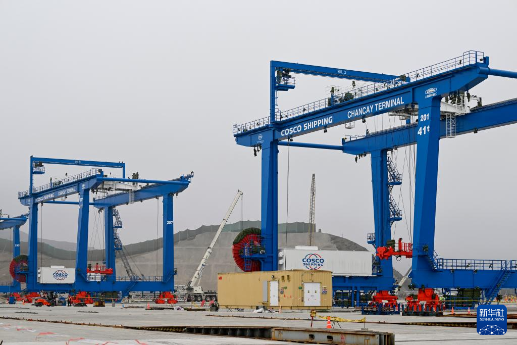 这是6月21日在秘鲁钱凯港拍摄的码头操作区。 新华社记者 李木子 摄