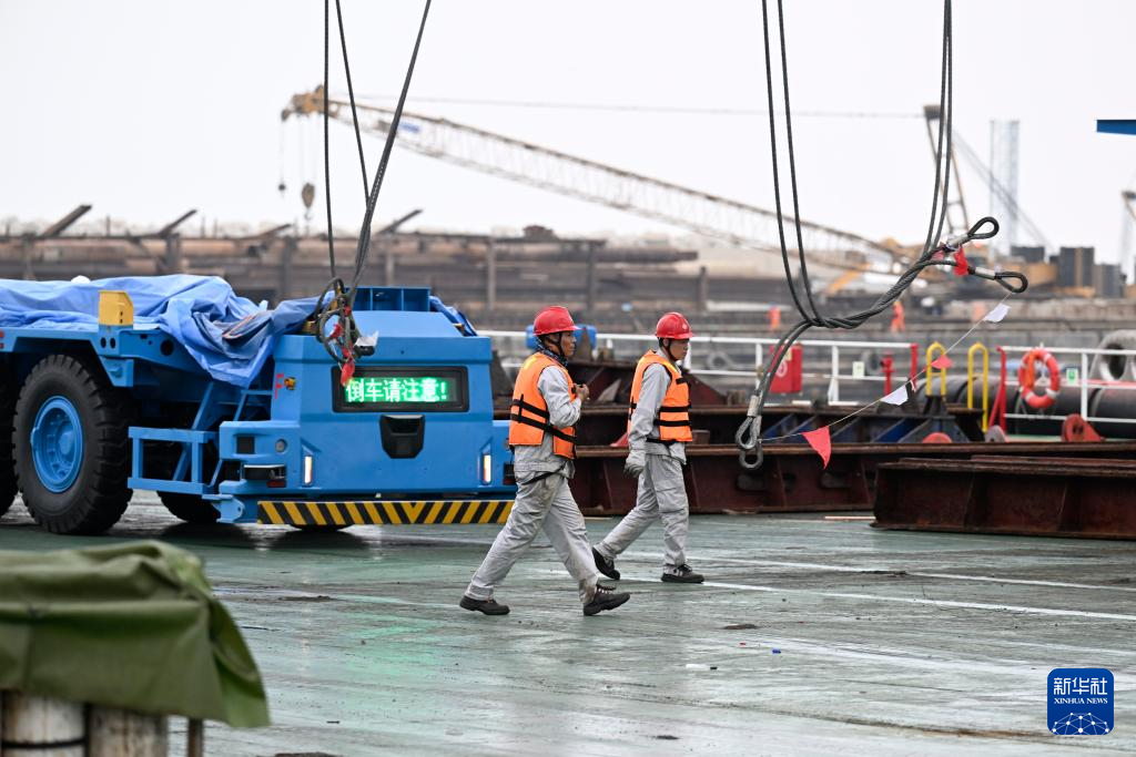 钱凯港项目一期工程始建于2021年,包括4个码头泊位。港口最大水深达17.8米,能停靠18000标准箱的超大型集装箱船,可实现近期每年100万、远期150万标准箱的设计吞吐能力。该项目总体进度已超过80%,码头主体结构已完工。