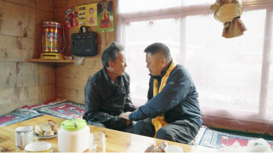 中国民生银行成都分行党委书记、行长马骏(左)与炉霍县县委书记格勒多吉(右)亲切会谈