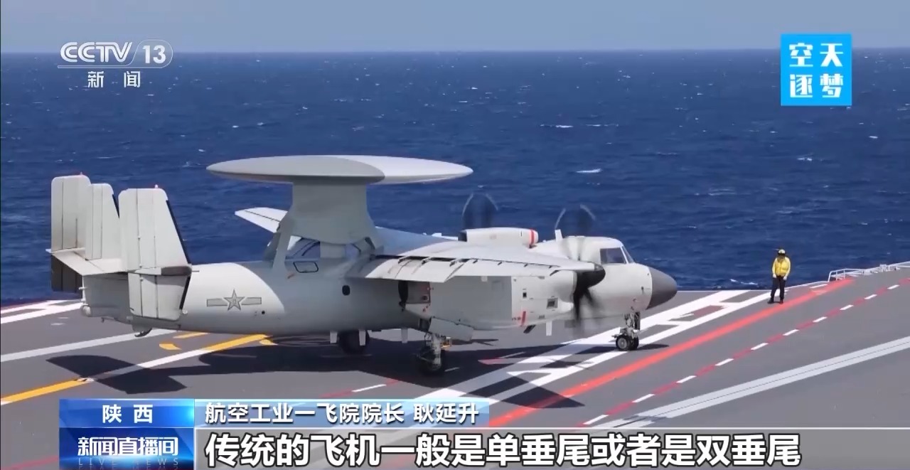 航空工业一飞院院长 耿延升:为了满足达到它的作战使命,它这个飞机设计也是很有特点。首先它是要在舰上能够运作,也就是说在舰上能够起降。舰上运作它有几个比较特殊的地方,第一个就是它相对于传统的陆基的运输类飞机来说,它舰上起降的话,它的结构强度比较大,能够扛得住舰面的弹射起飞、着舰拦阻,相应的大的过载。