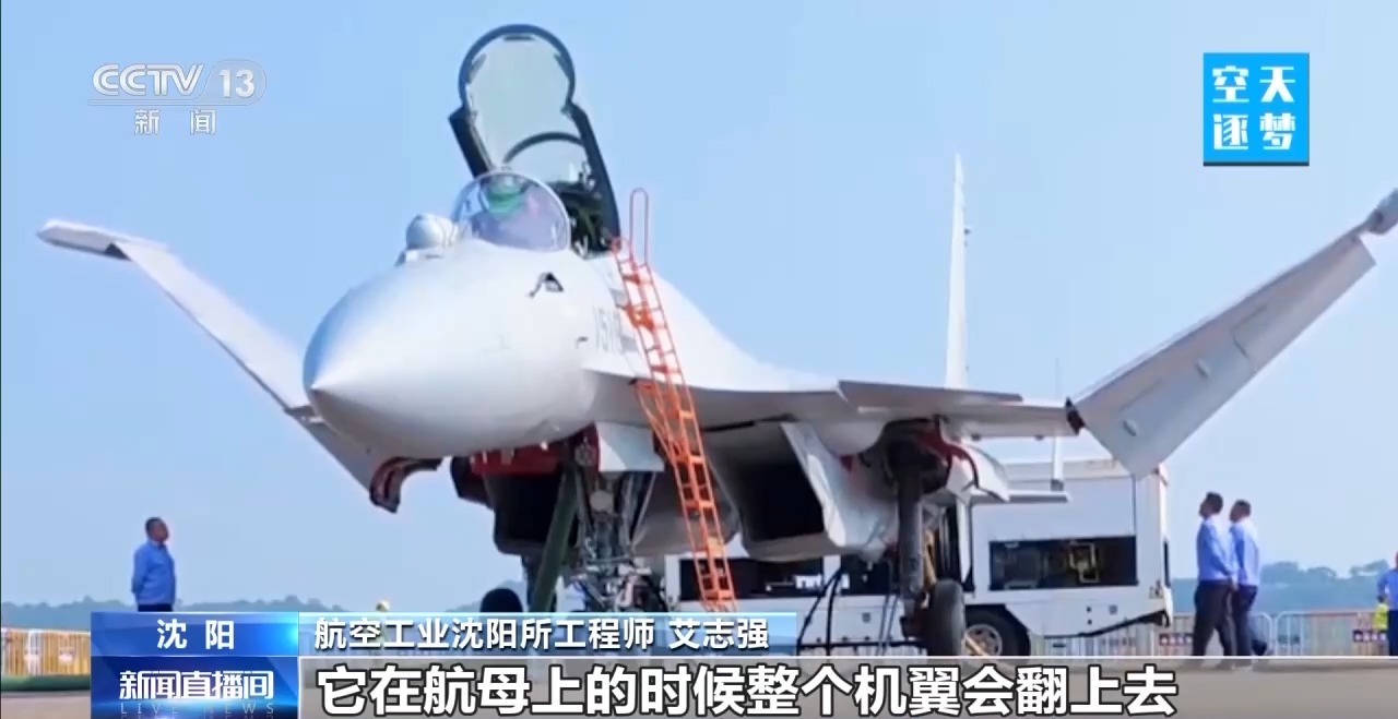 记者:我们看包括歼-15T、歼-35,它的折叠是类似于胳膊向上仰,这个折叠完全不一样。