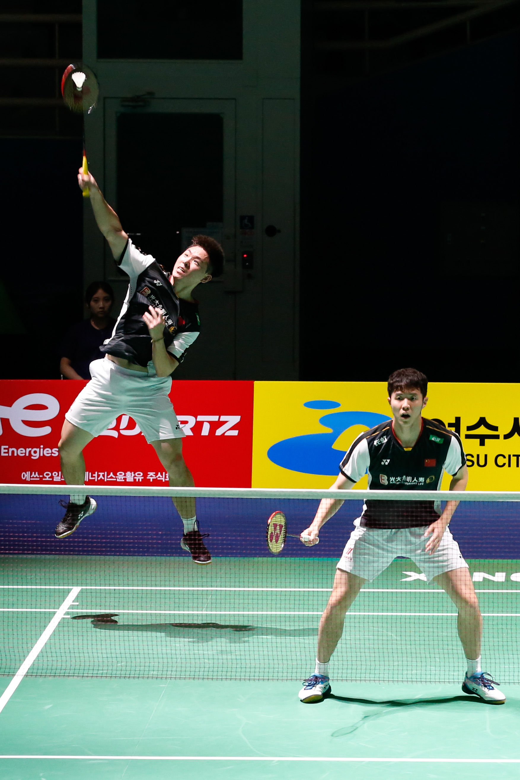女双比赛中,面对日本组合宫浦玲奈/樱本绚子,李汶妹/刘玄炫以21:18和23:21取胜,成功挺进下一轮。