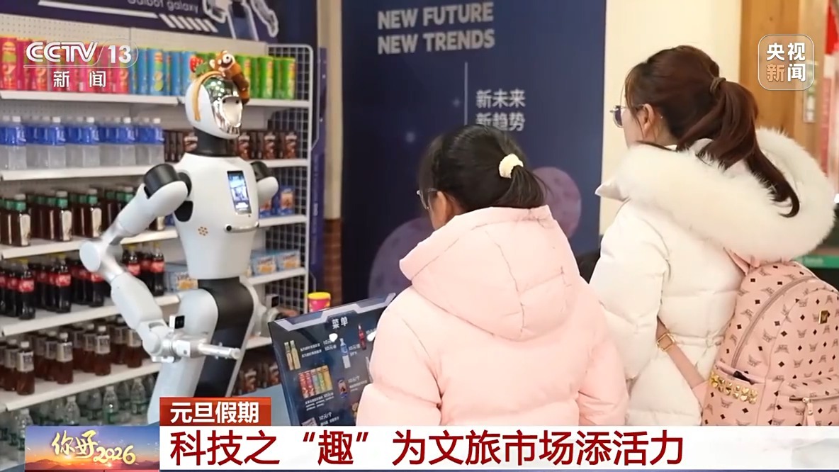 元旦假期,消费市场处处可见机器人的活跃身影,为假日消费市场增添了别样欢乐。在江苏苏州乐园精灵花园餐厅,智能零售机器人正忙得不亦乐乎。它不仅能主动和游客打招呼进行互动,还能协助饮品、零食、文创产品等60多种品类的零售服务,将原来顾客窗口等待的时间缩短了一半。