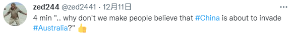 有网友点赞“操控大众,让他们相信中国将要入侵澳大利亚”的片段: