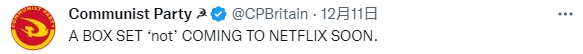 英国共产党官方账号风趣点评:“网飞公司‘暂无’计划播出该片。”